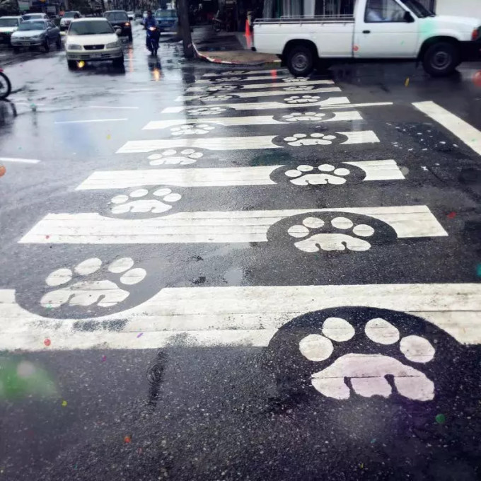 甲米镇上很有特色的斑马线