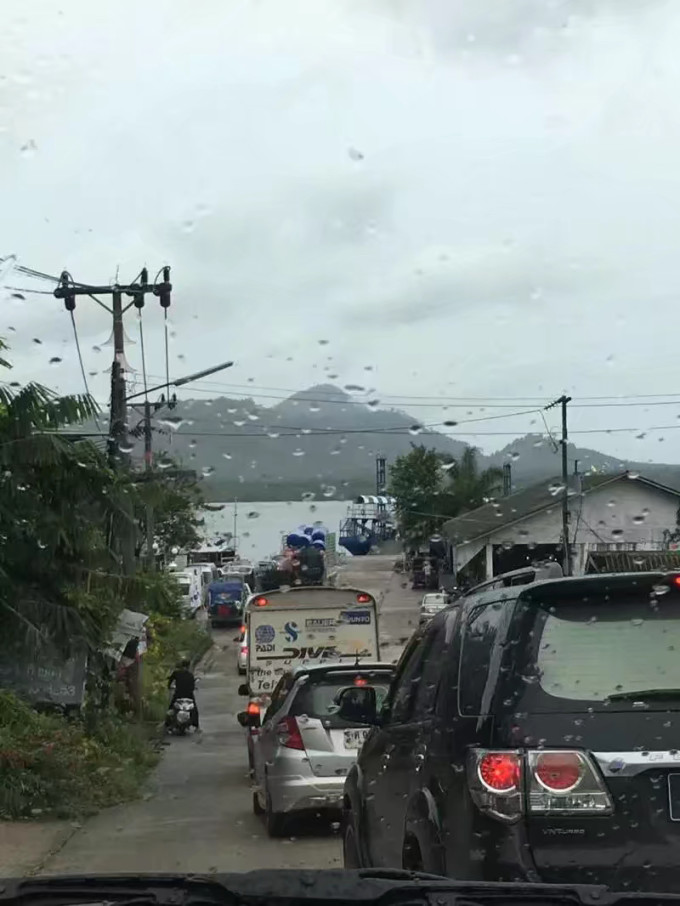 去兰塔岛的路上 两朋友坐在前面 我一个人坐在后面 = = 左边一个泰国大妈 右边一个俄罗斯妹纸 我中途