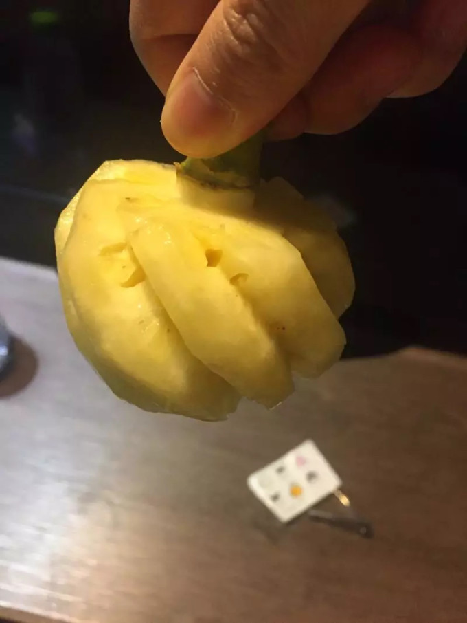 超级爱吃的小菠萝 回之前买了几个放在口袋 回国的时候也忘记了 下飞机发现小菠萝还在口袋里 囧 你们说泰国安检是有多水.....还有一瓶红牛 囧