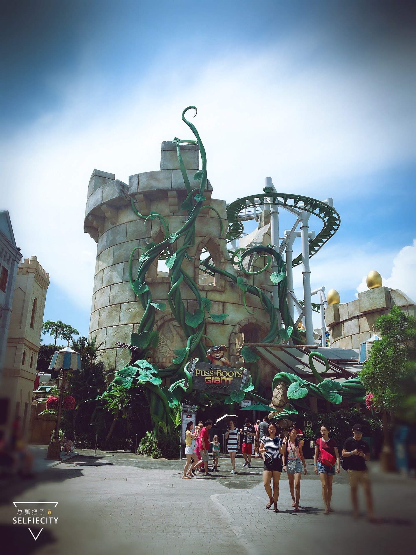 第二天去的圣淘沙岛环球影城。有直达的捷运直接刷公交卡就可以。午餐在环球影城门口吃了一家西餐 个人觉得还不错,价格大概在100到200之间两个人。环球影城里面有各种各样的游乐设施,其中我比较喜欢的一个是变形金刚,还有一个是埃及法老是那种类似于AR的效果他会动你的椅子 是你有一个失重的感觉,然后放出影像会让你觉得害怕。还有那个过山车非常的大我不敢玩。环球影城可以吃东西就随便吃了一点(我吃了一份热狗,四川麻辣口味,真的是我的天了,辣得我在异国他乡一边流鼻涕,一边流眼泪。最后决定把它放在一边给过路的小鸟吃,他还真吃了。)。(新加坡的商场还有餐厅开业时间都非常的晚,所以我们一般都很少能吃到早餐。)晚上玩完了之后。晚上在圣淘沙岛上看时光之翼 之后可以走路回去夜景还不错。