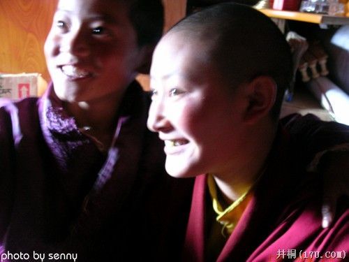 正在得意洋洋,却被一个小女孩看见,听说是在天葬台拣的,她一声尖叫,说不能拣啊,死人会报复的,吓一大跳,连问怎么办,拣都拣了嘛。旁边路过的觉母告诉我们,赶快送回去吧。靠,还要绕那两匹山回去,还是让我们死了算了。