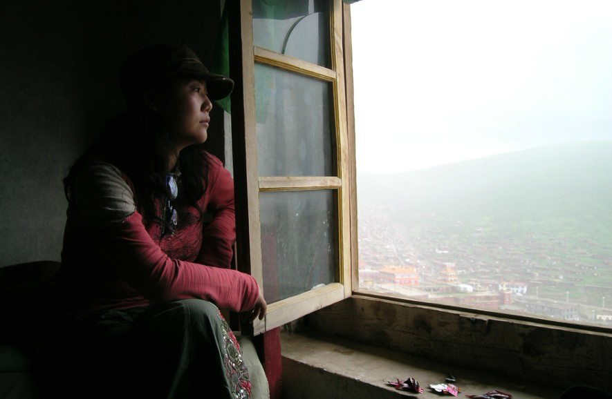再次走在街道上时,难免开始注意身边的红房子,每个红房子都被隔作了几间,每个空间都很小,有的只有1个人住,有的则住了好几个。不只是藏族,学院里的汉族人居然也不少,他们来自全国各地,进了学院,便默默披上袈裟,每日清晨开始早课,午饭后休息一下继续学习,晚上还有晚自习或者听大课。年龄跨度也很大,从十来岁的少女到70岁的老人都有。贫富暂时看不出来,但在路上,我们曾见过一位纹过眼线的中年觉母,想来未出家前应该也是很爱美的罢。