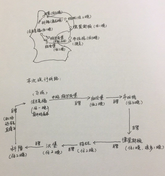先说一下这次自驾游德国+布拉格的基本路线和行程安排吧: