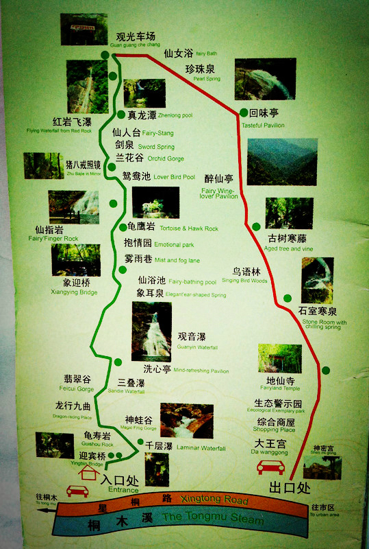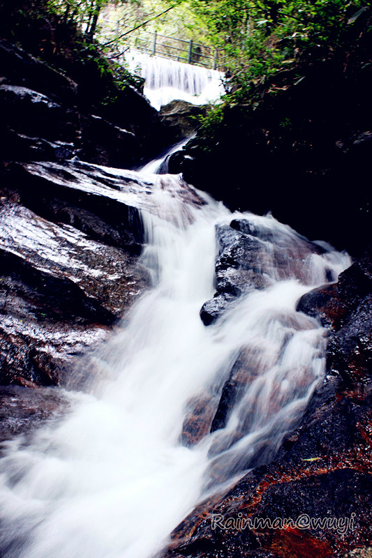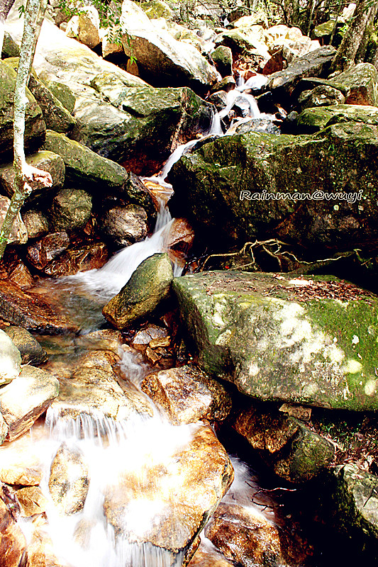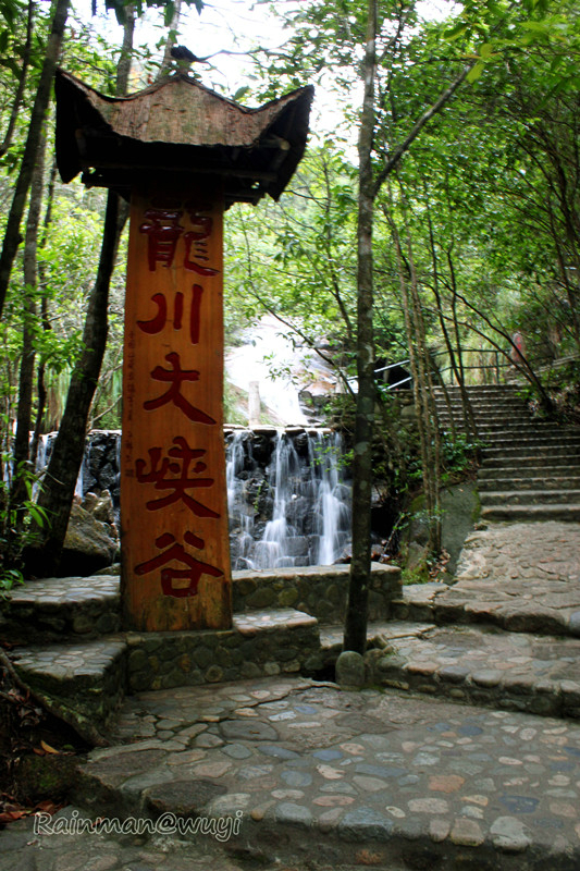 第一站龙川 大峡谷。其位于武夷山 自然保护区内,20多公里路程,开车10多分钟即到。这里峰峦叠翠,古树参天,叠泉流瀑。置身于其中,方知“龙川 ”两字的贴切。一条娟细的白练蜿蜒在乱世嶙峋之中,时隐时现,飞流直下,飞花溅玉,令人感叹。诸多景致为一体,耳闻鸟鸣泉吟,目染峻山清涧 ,仿佛进入了盆景和瀑布的世界,美不胜收。