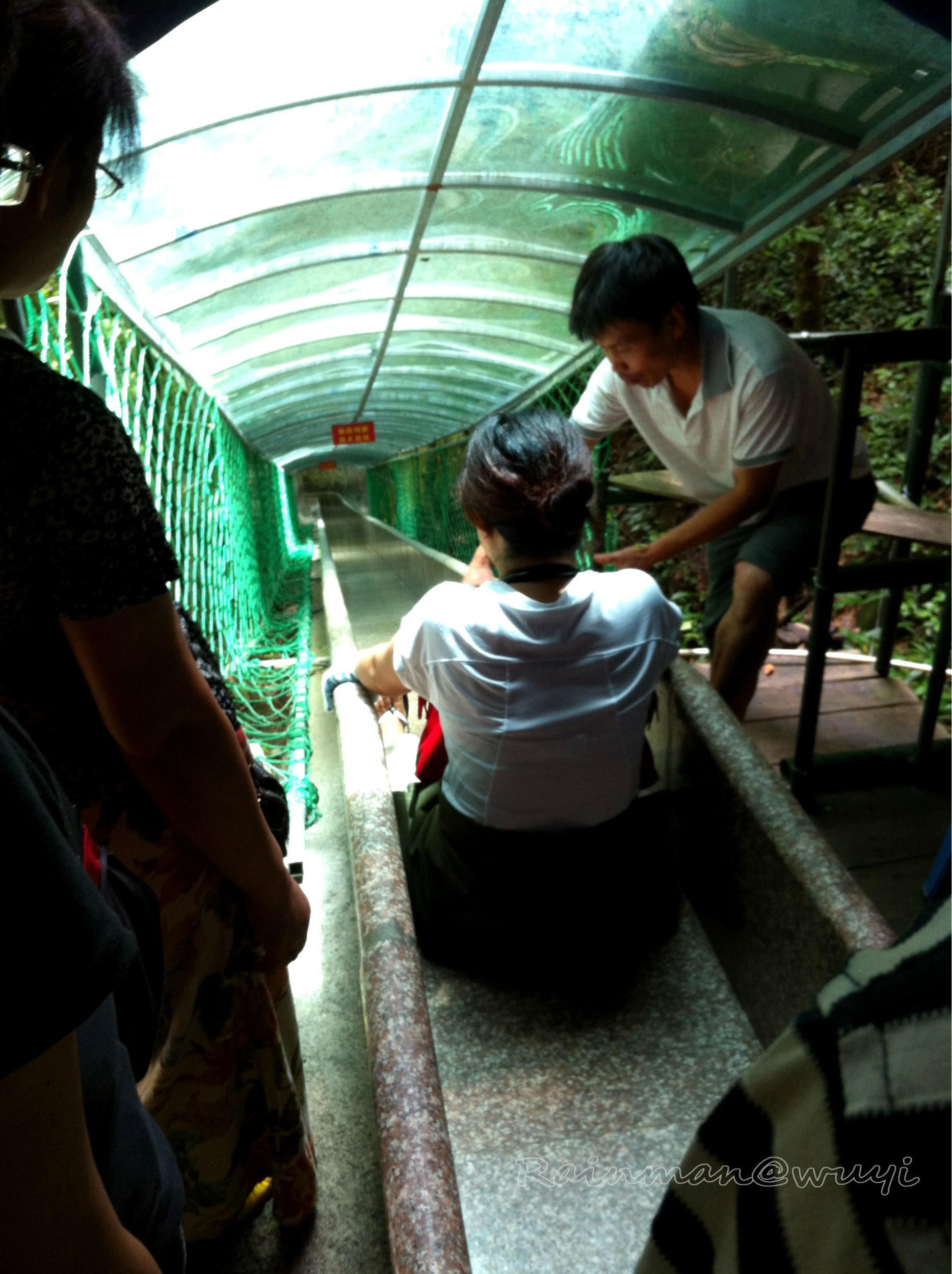 这只是麻烦的开始,由于没提前订票,要到散客窗口买票。到哪儿一看,订票窗口乱得一塌糊涂:本来仅容1人排队卖票的散客窗口,愣是挤了两队人,还有一群气焰嚣张的“黄牛党”夹杂在散客队伍中,来个人就说不要排队买票,每个人加10元,直接带我们进去。记得买票前导游提醒千万不要理会这些人,自己买票就行了。于是开始了漫长的煎熬。卖票很奇怪,每隔30分钟买一次票,每次票数不一定,就是说排队也不一定能买到票。一堆散客在炎炎烈日下痛苦排队,卖票的却熟视无睹,黄牛党依然在叫嚣,5A风景区就是这个样子。无奈中和前面排队的广州 大哥聊了起来,对这样的服务实在是无语。等了2轮,广州 大哥刚买完票,到我了。可突然从左侧插进来几个人想要加塞买票,排队的人愤怒了,纷纷指责,窗口也拒绝卖票。这几个人占住售票窗口,声称不给他们票就不让大家卖票了。人群更加愤怒了,我只感觉到后面排队的人拼命往前挤,场面几乎失控。广州 大哥真够义气,在窗口的他拿过我手中的钱递给了售票员,自己一下子跳到窗台上,大喊到“你们武夷山 就这样子,还5A风景区?你们有本事拍我,把我发到网上去。”人群安静了下来,那几个加塞的人灰溜溜的走了,买票的队伍恢复了秩序。谁说南方男人不爷们!可惜匆忙之中没留下个联系方式。建议各位提前订票,还要凑够6个人,因为漂流的竹筏是6人一只的。