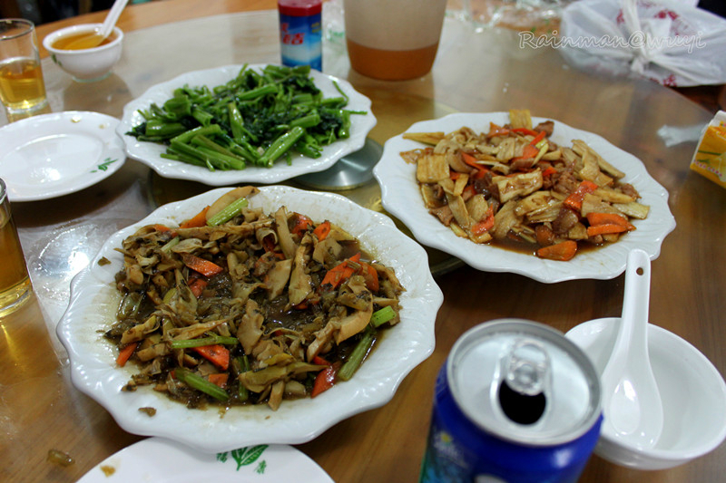 第三站:九曲漂流。中午时分,赶到了九曲漂流,在农家饭店吃中饭,这里菜价奇贵,一盘焦黄炒肉要价38元,点了3个菜共用了100多,实在无语,建议各位最好不要在这里吃饭。