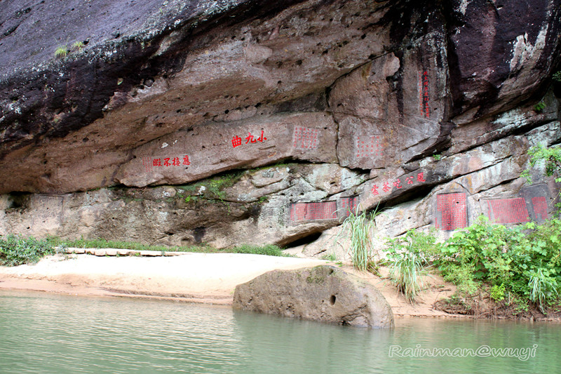 个人认为九曲漂流是武夷山 之精华,其全长62.8公里,从西向东,蜿蜒自如,山绕水转,水贯山行,溪水晶莹(水质达国家地面水Ι类标准)。武夷山 以竹筏为游览交通工具已有1000多年的历史,由于它浮力大,吃水浅,轻便灵活,筏工只要用一根竹篙驾驭,竹筏就能在九曲溪中随波逐流。游客坐筏观山,举目皆画,丹山 、碧水、绿树、蓝天、白云相映成趣,可谓人在画中游。筏工要给每人10元的小费才会解说。如若不然,90分钟的漂流会变成60分钟,而且大家枯坐筏中,甚是无趣。给了小费的筏工,会把荤段子融入风景解说中,绘声绘色,让人大笑不止,据说这里的女筏工也会讲,而且让很多男游客都觉得不好意思,可惜没有碰到,这也是武夷山 一道亮丽的风景线。