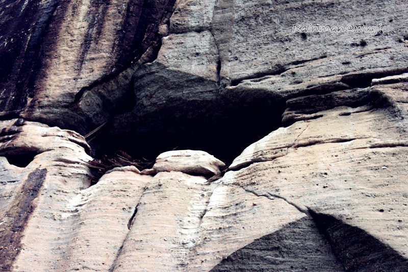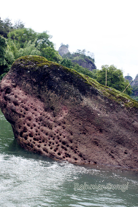 岩石上的洞,是历代筏工撑竹筏的见证。我说,你可以流芳百世了。