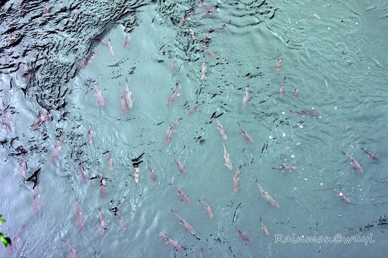 九曲溪里的鱼,码头有鱼食卖,可以喂鱼。