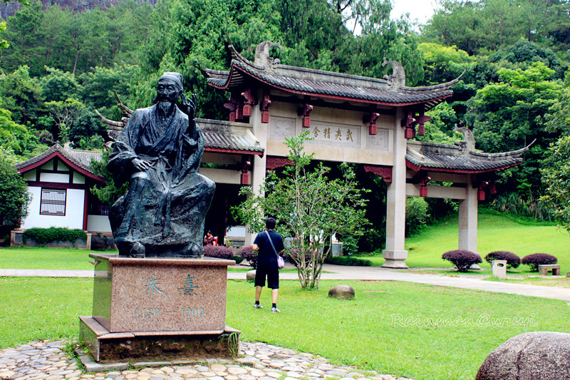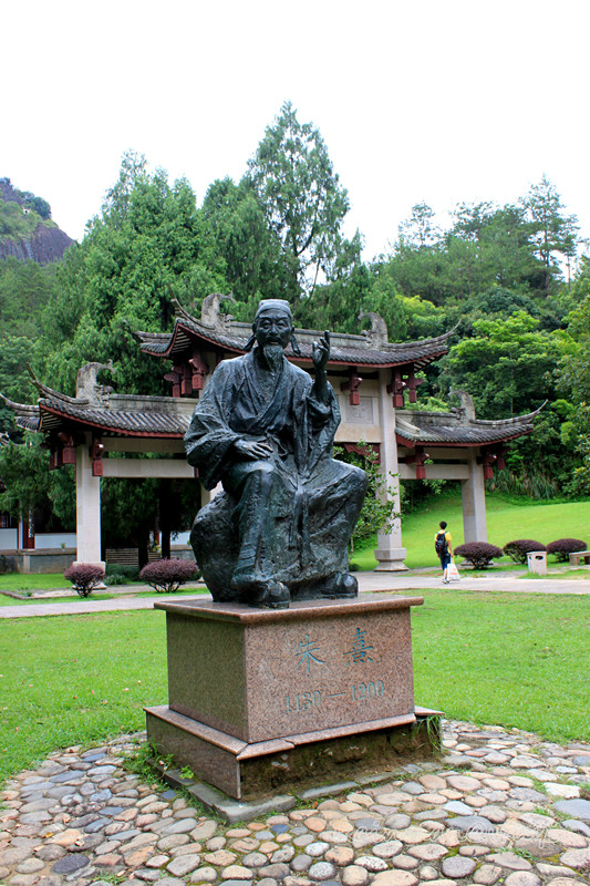 朱熹与武夷山 :朱熹(1130-1200)是继孔子之后中国 历史上最伟大的思想家 、哲学家和教育家 。他集孔子以下学术思想之大成,形成儒学思想文化的杰出代表------朱子理学,被钦定为官方的正统哲学思想,构筑了中国 宋代 至清代(13世纪至20世纪)700余年间一直处于统治地位的思想理论,代表具有普遍意义的传统民族精神,影响远及东亚 和欧美诸国,成为东亚文明的体现。武夷山 与朱子理学有首不可分割的联系。朱子理学在武夷山 孕育、形成、发展。朱熹从14岁到武夷山 ,直到71岁去逝,在武夷山 从学、著述、授徒、生活50余年。朱子理学在这里萌芽、成熟、传播。朱熹在武夷山 创办的武夷精舍等书院成为当时最有影响的书院,直接在武夷山 受业于朱熹的学者达200多人,许多成为著名理学家,形成有影响的理学学派。在朱熹的影响下,历代理学家纷纷以传道为已任,在武夷山 溪畔峰麓择基筑室,著述授徒,仅宋元间在武夷山 创立书院的著名学者就有43位,使武夷山 成为理学名山 。中国 著名历史学家蔡尚思 教授赞誉:"东周出孔丘,南宋 有朱熹。中国 古文化,泰山 与武夷"。朱熹及其门人、后人在武夷山 的活动,为武夷山 留下极其珍贵的文化文化遗存,如书院遗址武夷精舍、有朱熹等理学家富有哲理 的题刻, “逝者发斯”、“修身为本”、“智动仁静”等、有现存朱熹撰并书字数最多的“武夷神道碑” 、还有朱熹创办的社仓 等等。这些文化遗存,对研究朱子理学和儒学的兴衰演变以及中国 哲学理想史都是非常珍贵的,是中国传统文化 的瑰宝。