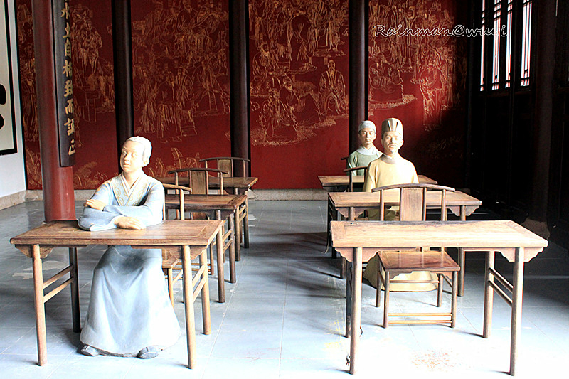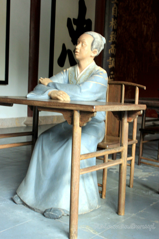 先到的是武夷精舍,其又称武夷书院,紫阳 书院、朱文公祠,位于隐屏峰下,是朱熹于淳熙十年正月亲自营建的一所书院,也是当时武夷山 最外的建筑群,人称"武夷之巨观"。清康 熙皇帝曾赐"学达胜天"的匾额。历代统治者都对精舍加以重视,不时修建,扩建或重建,并由朝廷拔给公田以供养学者。1996年被毁,现仅存遗址。