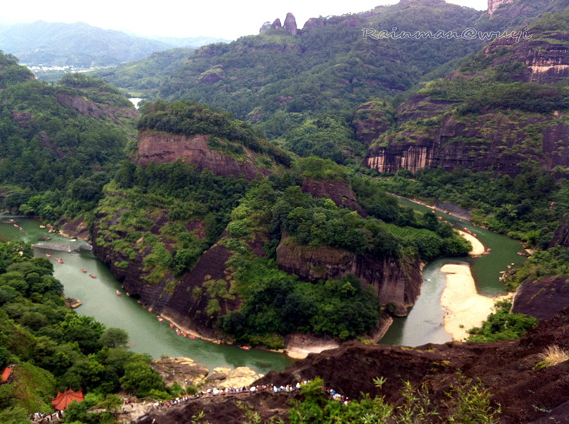 终于爬到了山顶,汗水湿透了衣服,站在山顶远眺,九曲漂流就在眼前,武夷美景尽收眼底。