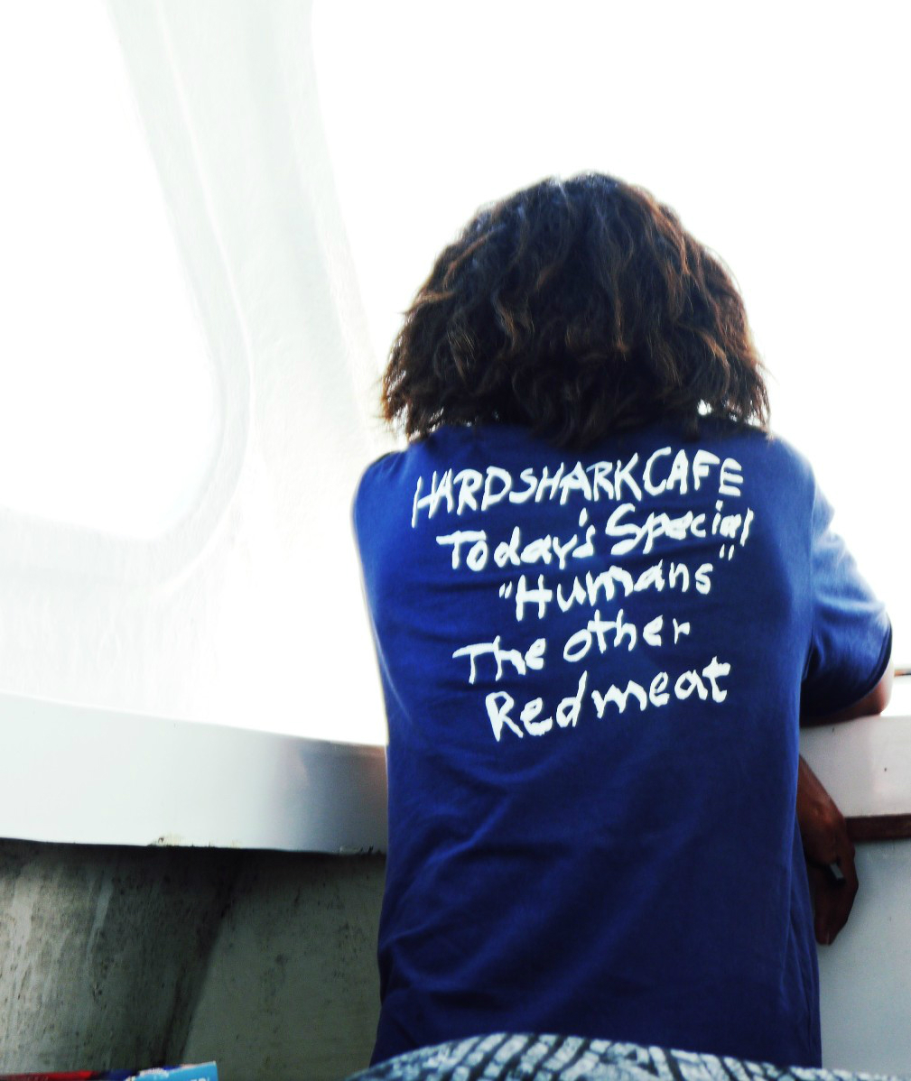 船上几个年轻的马来船员很是热情,充满活力,他们对海洋的热爱从每个毛孔散发出来。看看这位的tee。保护海洋生物,就是保护人类自己。