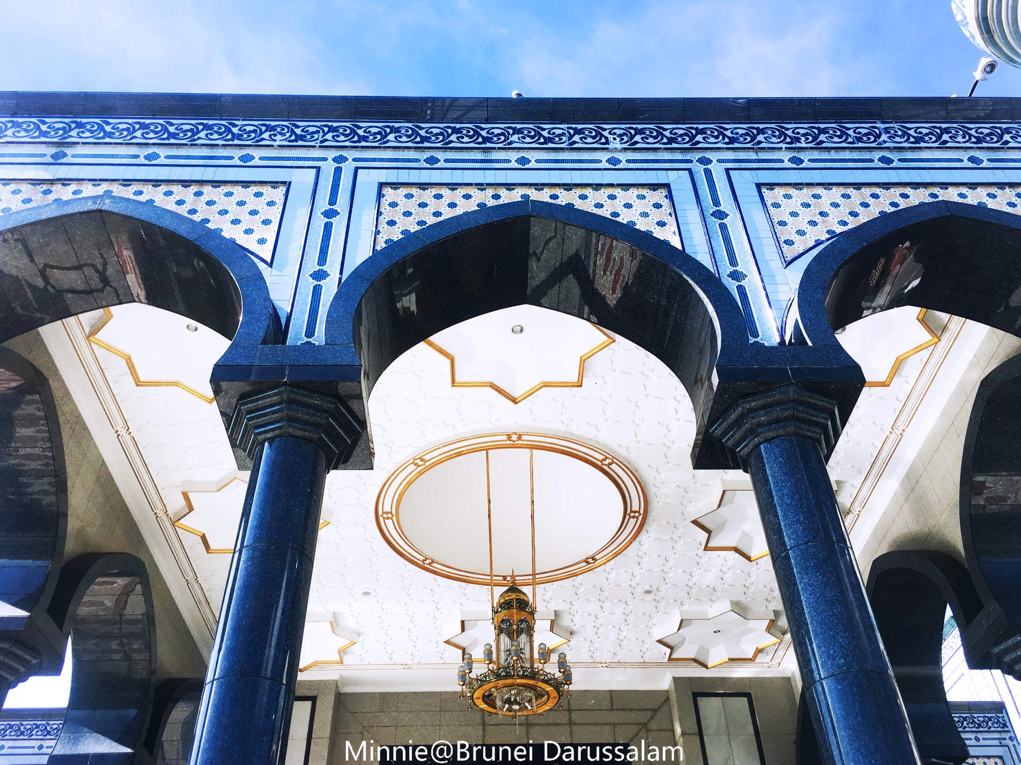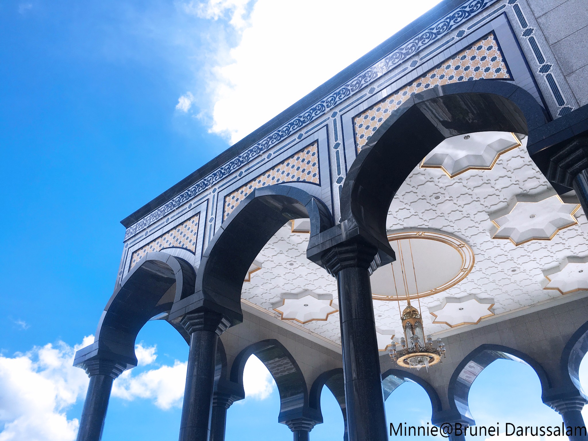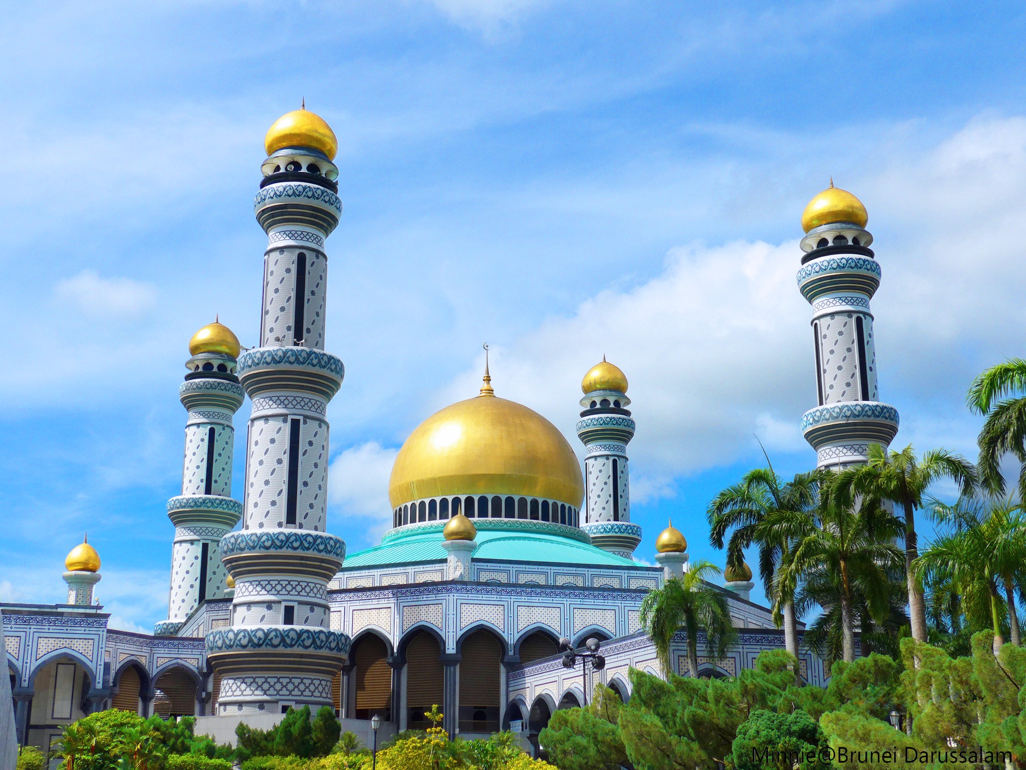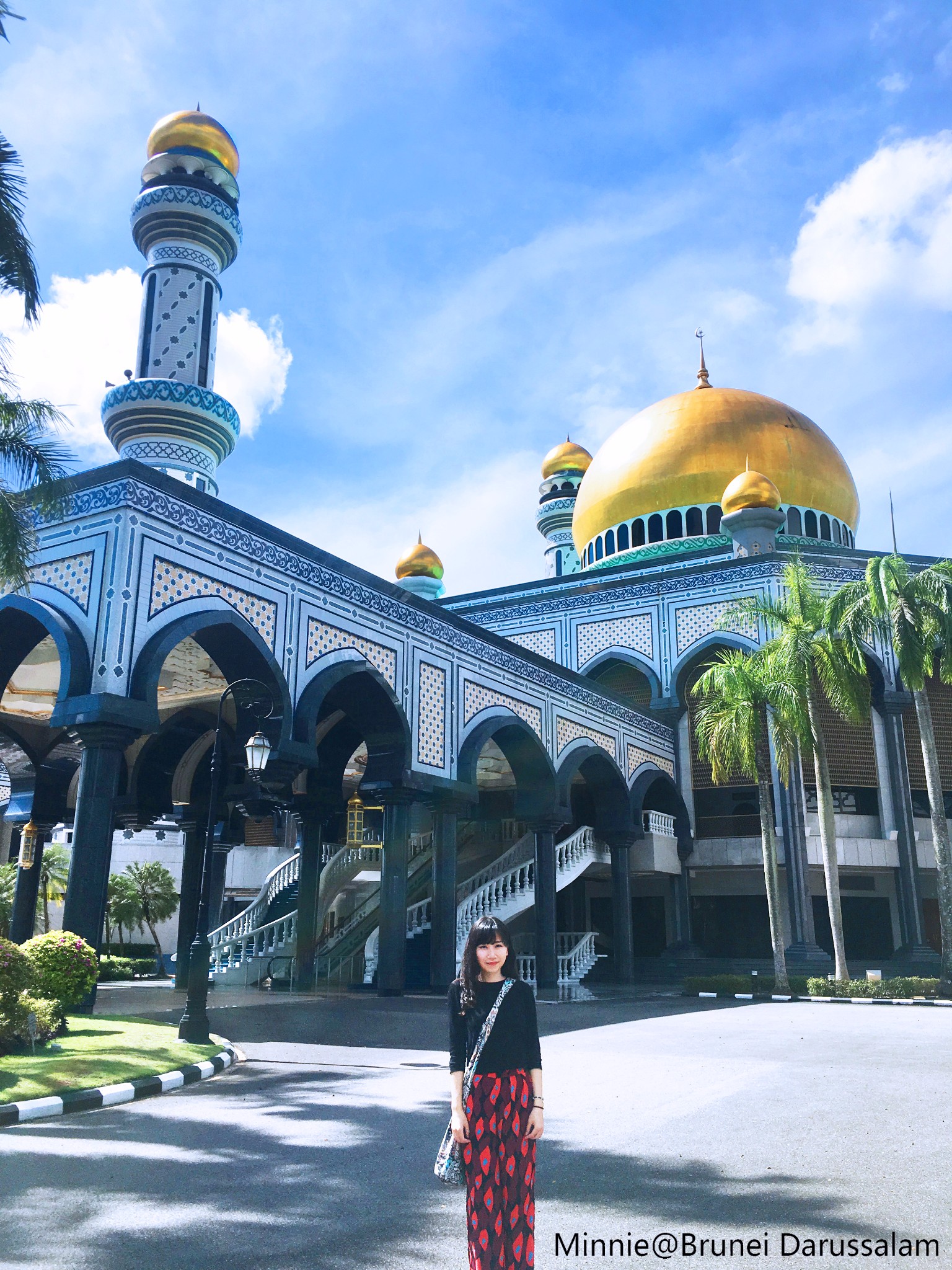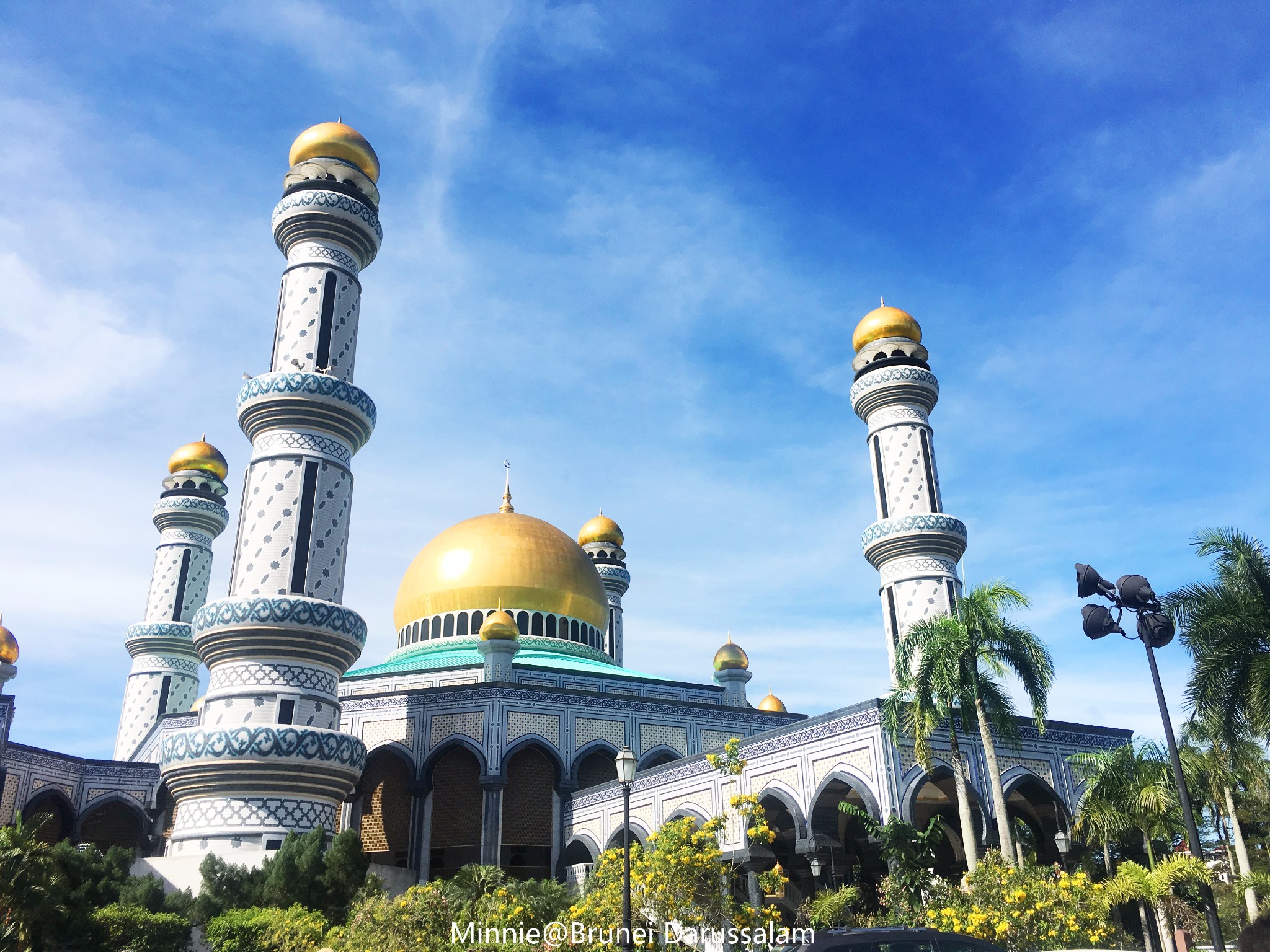 一早来到文莱全国最大的清真寺 杰米清真寺,它是现任文莱苏丹(第29任)主持修建的,共29个纯黄金圆顶,清真寺内台阶也为29阶,皆代表着第29任苏丹。而清真寺内的7座拱门和15座喷泉,寓意着苏丹7月15生日。