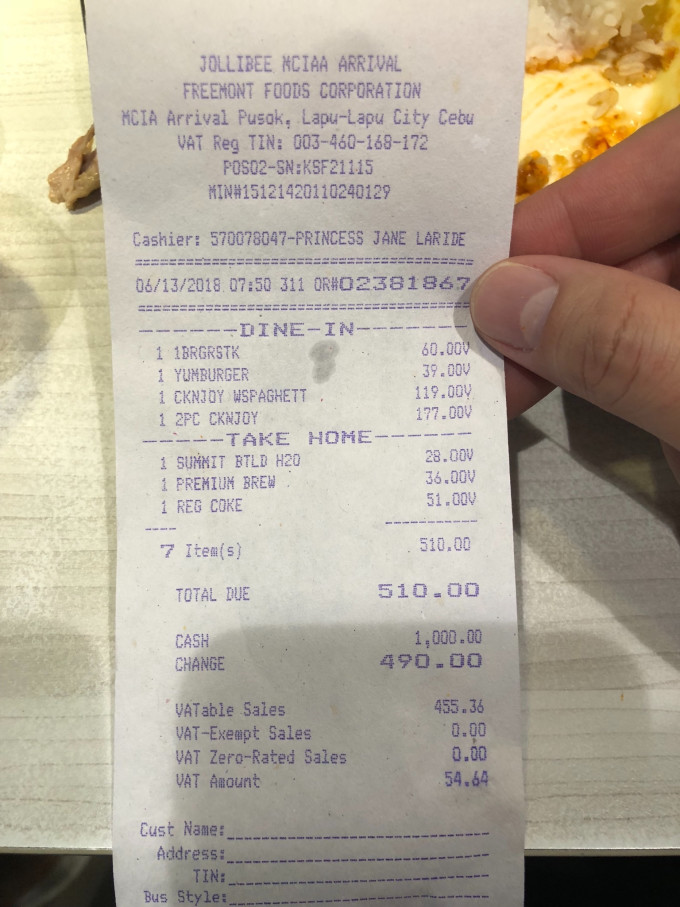 下飞机后,先在旁边的Jollebee吃个早餐,这个就相当于当地的KFC,24H营业