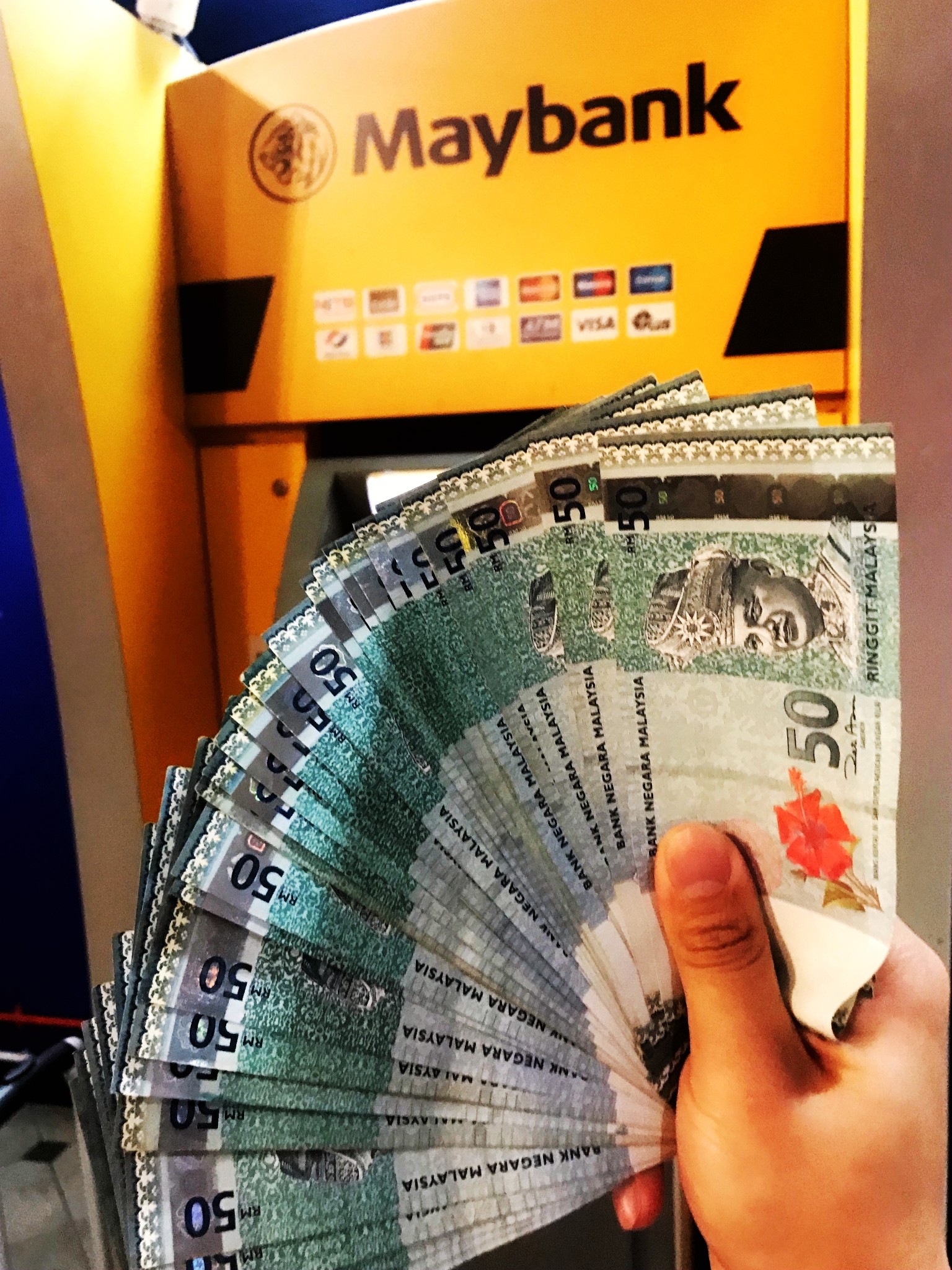 斗湖机场出口右手边步行30米再右转,就能醒目的看到ATM Maybank 。对于取现,不用担心看不懂,有中文界面,一次最高取现1500RM(约RMB:2400元左右,估算有些大,但是存个2500元一定够换啦)。