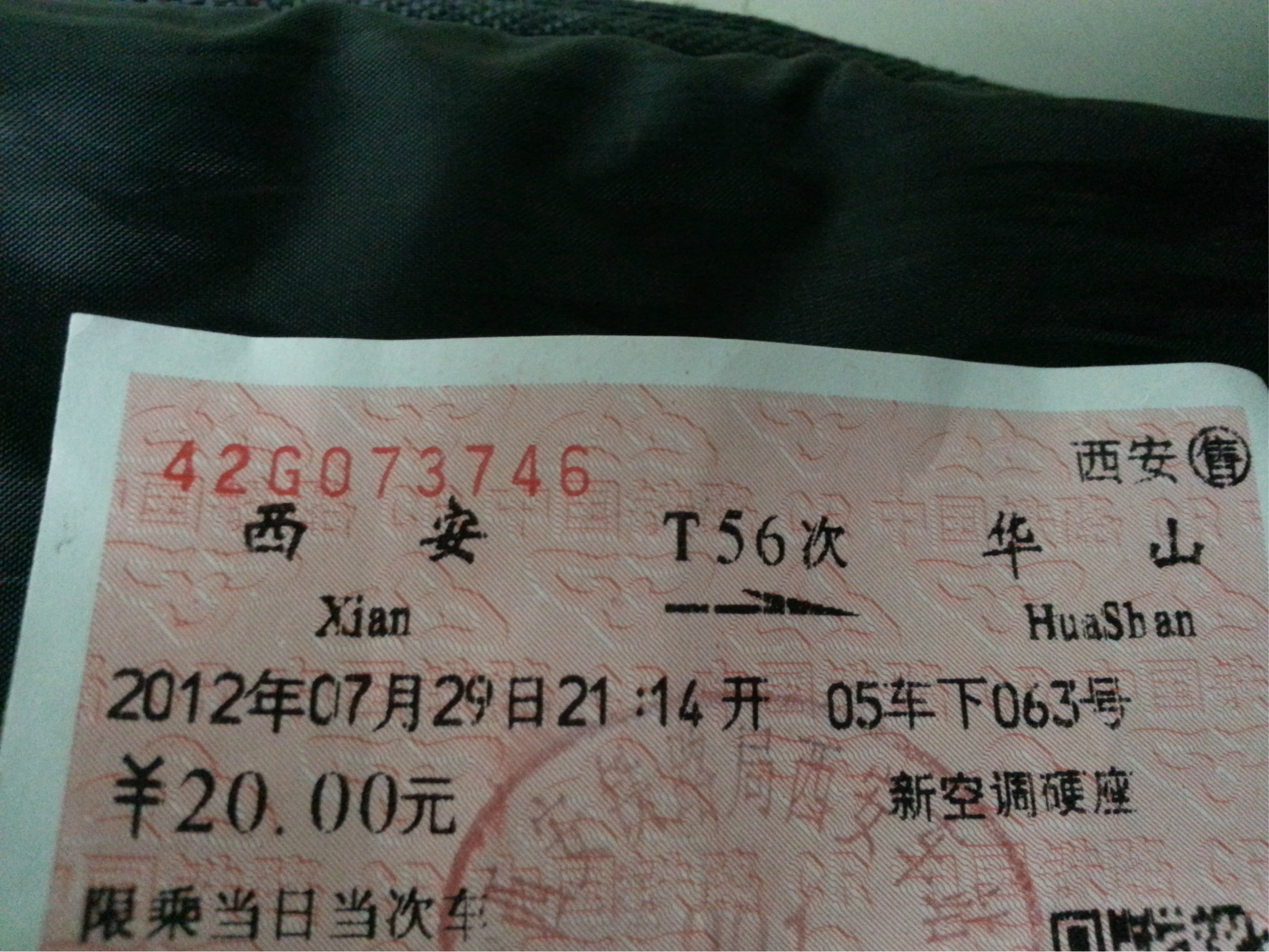 D1:7月27日夜——7月28日 礼拜从/travel-scenic-spot/mafengwo/10208.html{重庆} 到/travel-scenic-spot/mafengwo/10195.html{西安} 、车票后来听央说是RMB:58