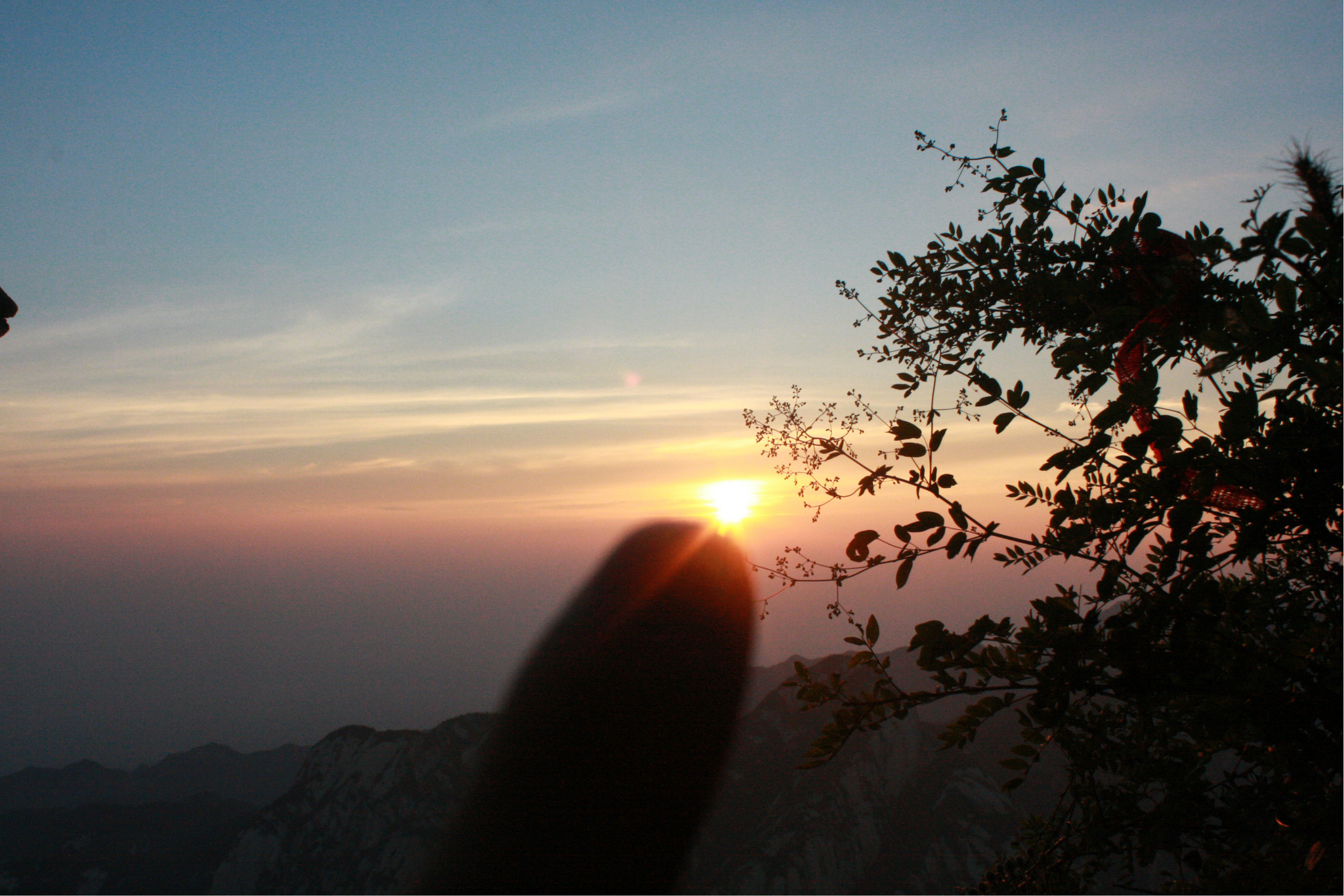 不知道矗立在东峰多久、早已枯了的树杆、每太阳升起的日子都能幸福的看到日出