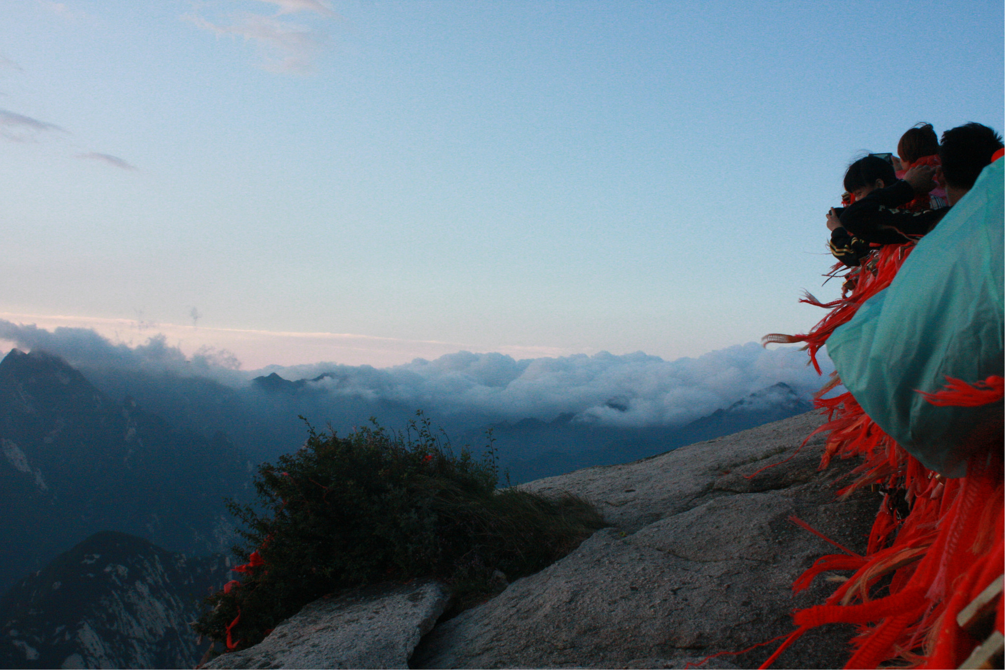右侧的云海还在集结、可以看到旁边好多人、还有曾经许多许下诺言的、为诺见证而永远留在画上的红色的东西、(我叫不上名字)