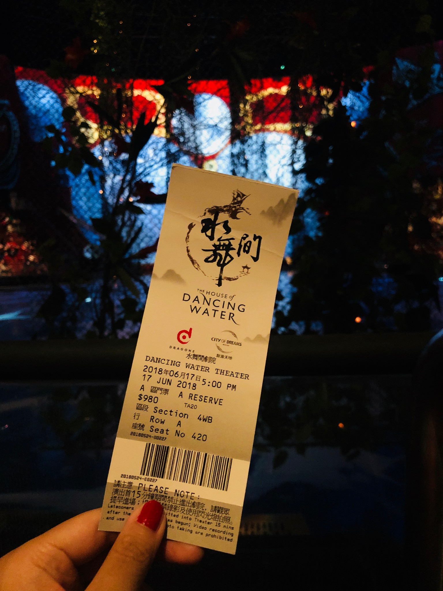 另外我要说的是水舞间!马云爸爸帮我买的A区的票,不能选位置只能随机安排,大概是因为我订票比较早,给我的位置是第一排正中间。晚上5点场,90分钟左右(第二场7点?8点?)