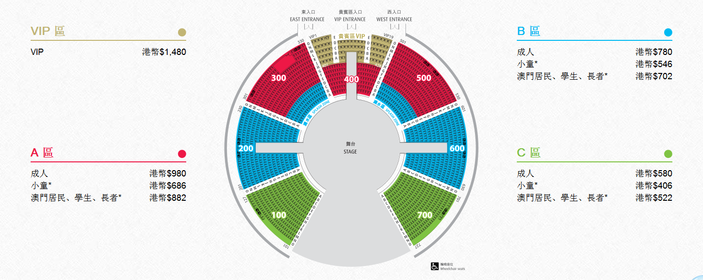最好的票是正中间7排以后的VIP票,大概是因为不会被水溅到以及舞台稍微升高的时候看的比较舒服吧。