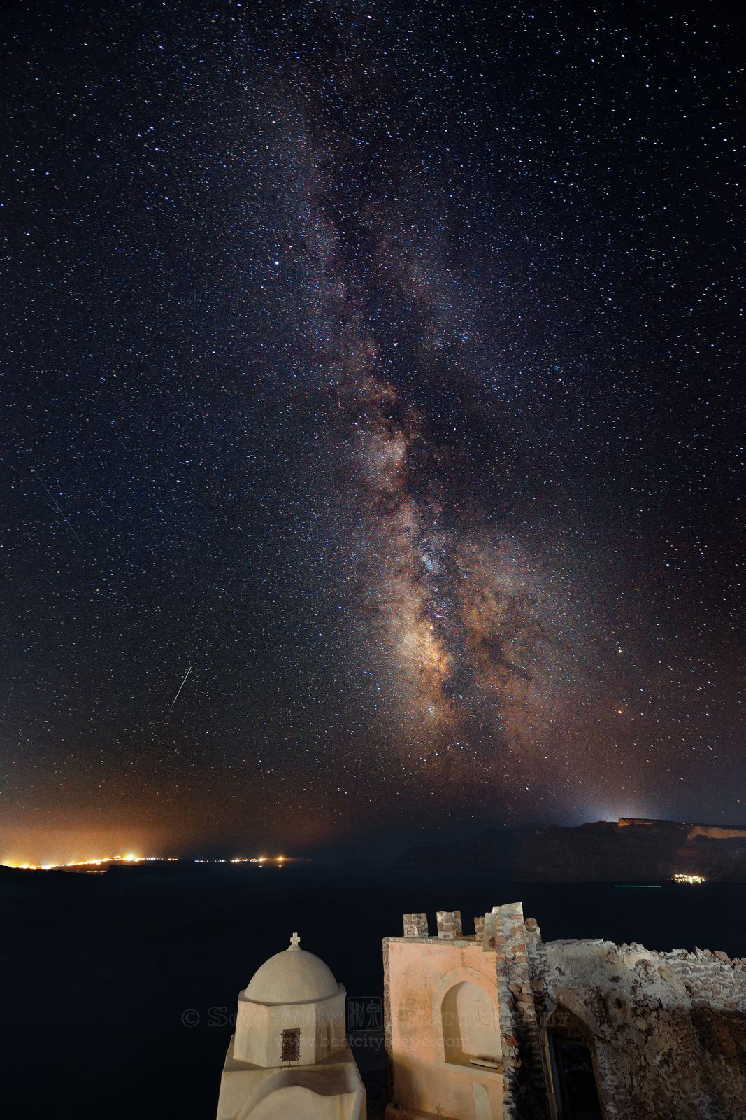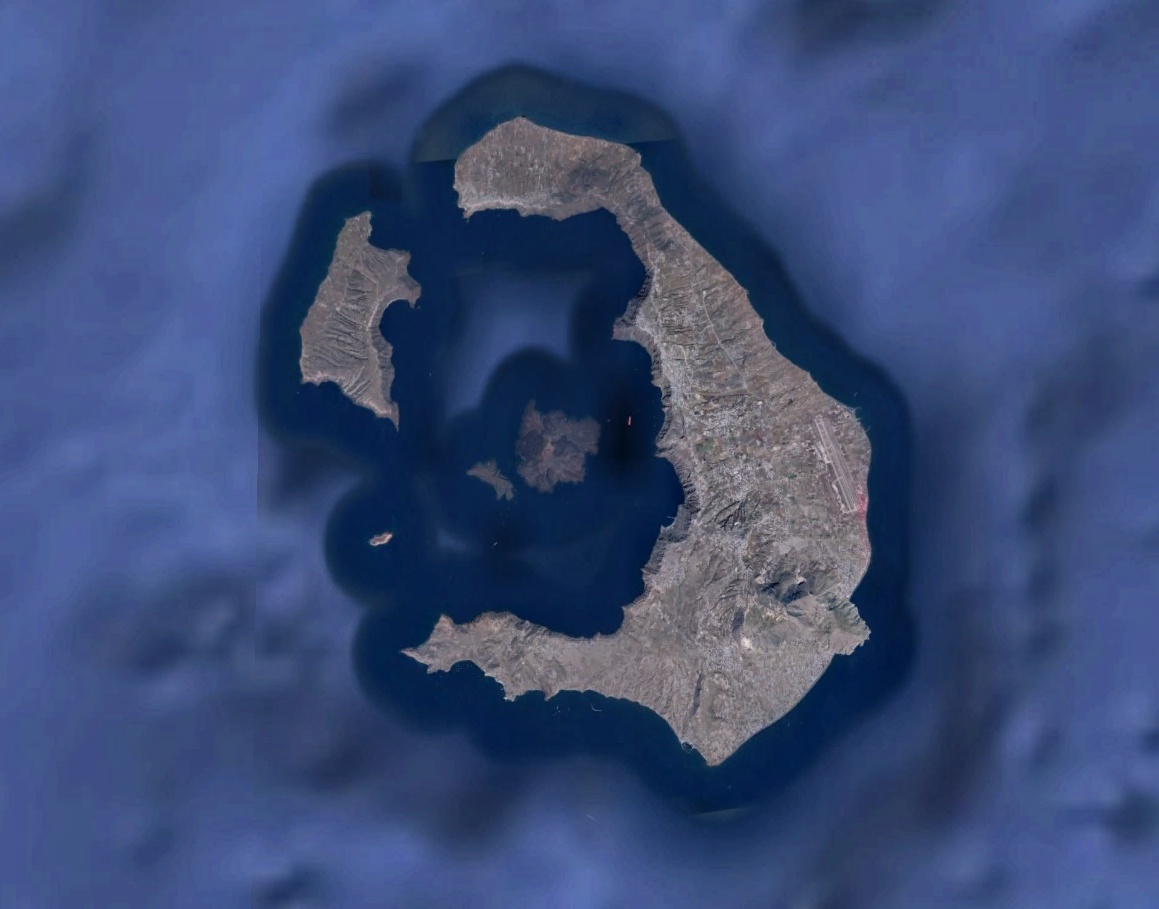 其实,以前圣托里尼岛是个整圆形的岛屿。3600年前,中部的火山喷发引发地震海啸,造成中部很多区域塌陷沉入海底,便成为我们今天看到的星月形状。