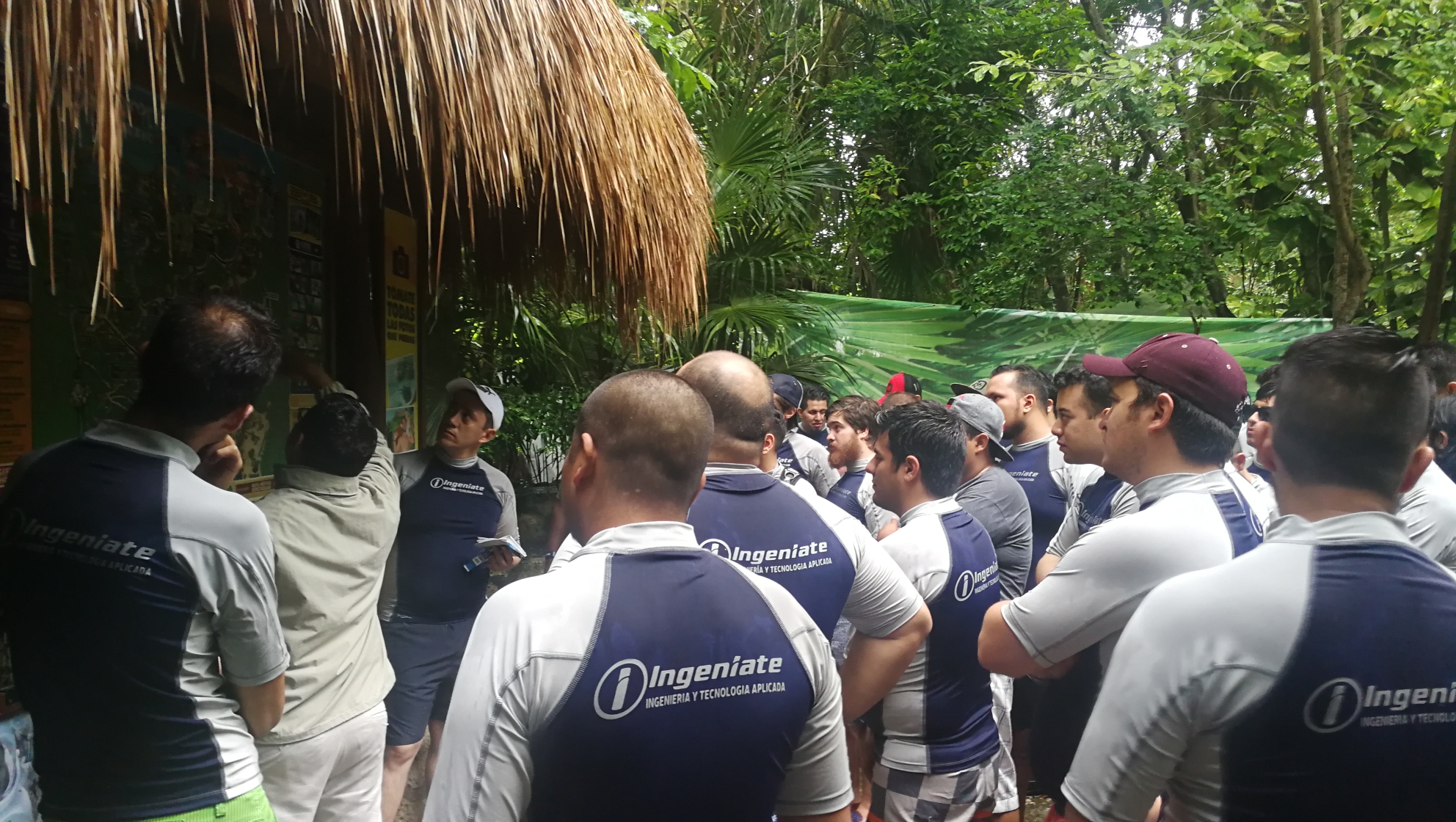 一个老外旅行团正在看公园地图。公园分了好几个主题线。我们要找的主题是天堂河漂流,地下河游泳和海滩浮潜。