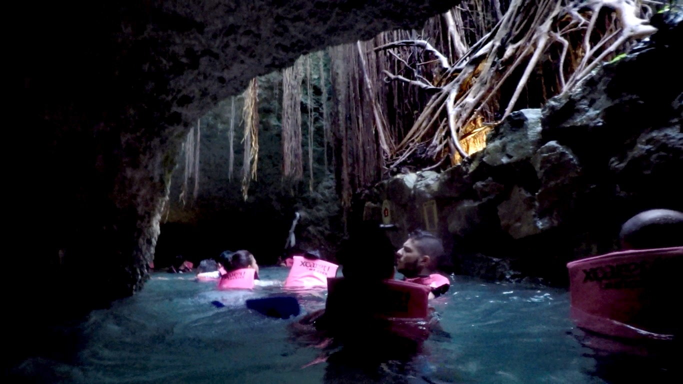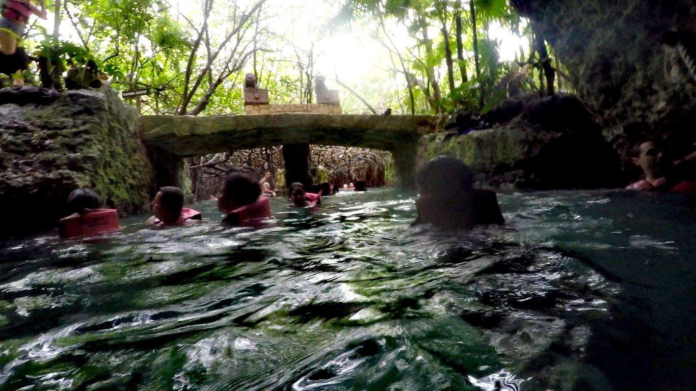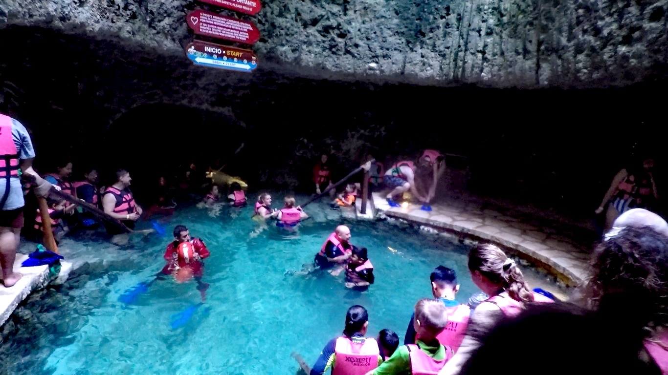 登船上岸后,我们继续第二个主题:地下河游泳。这是Xcaret乐园的一大特色。Xcaret乐园中估计有三条地下河游泳通道(至少两条)。我们只游了其中一条,应该是叫Xcaret plus这一条。