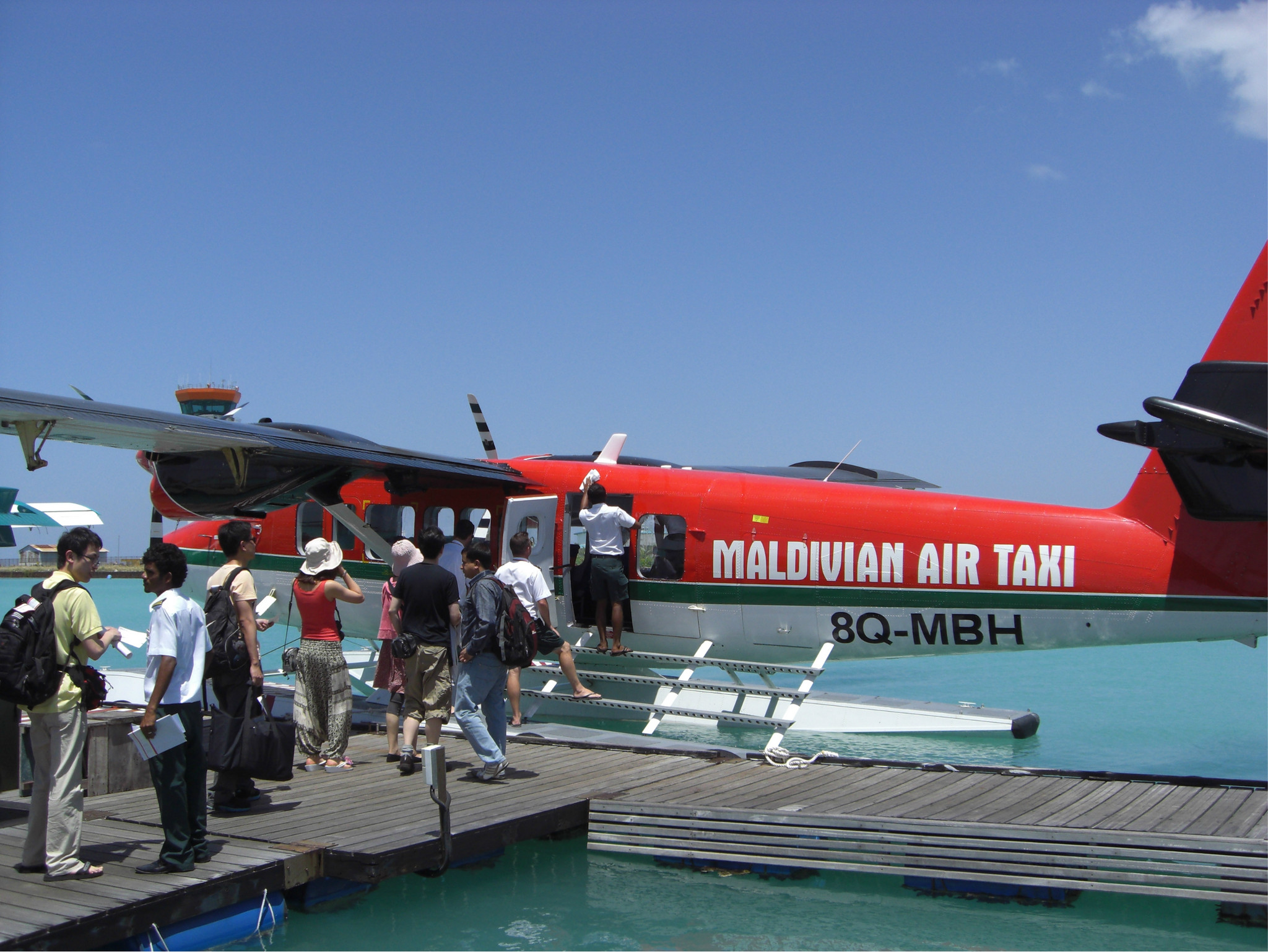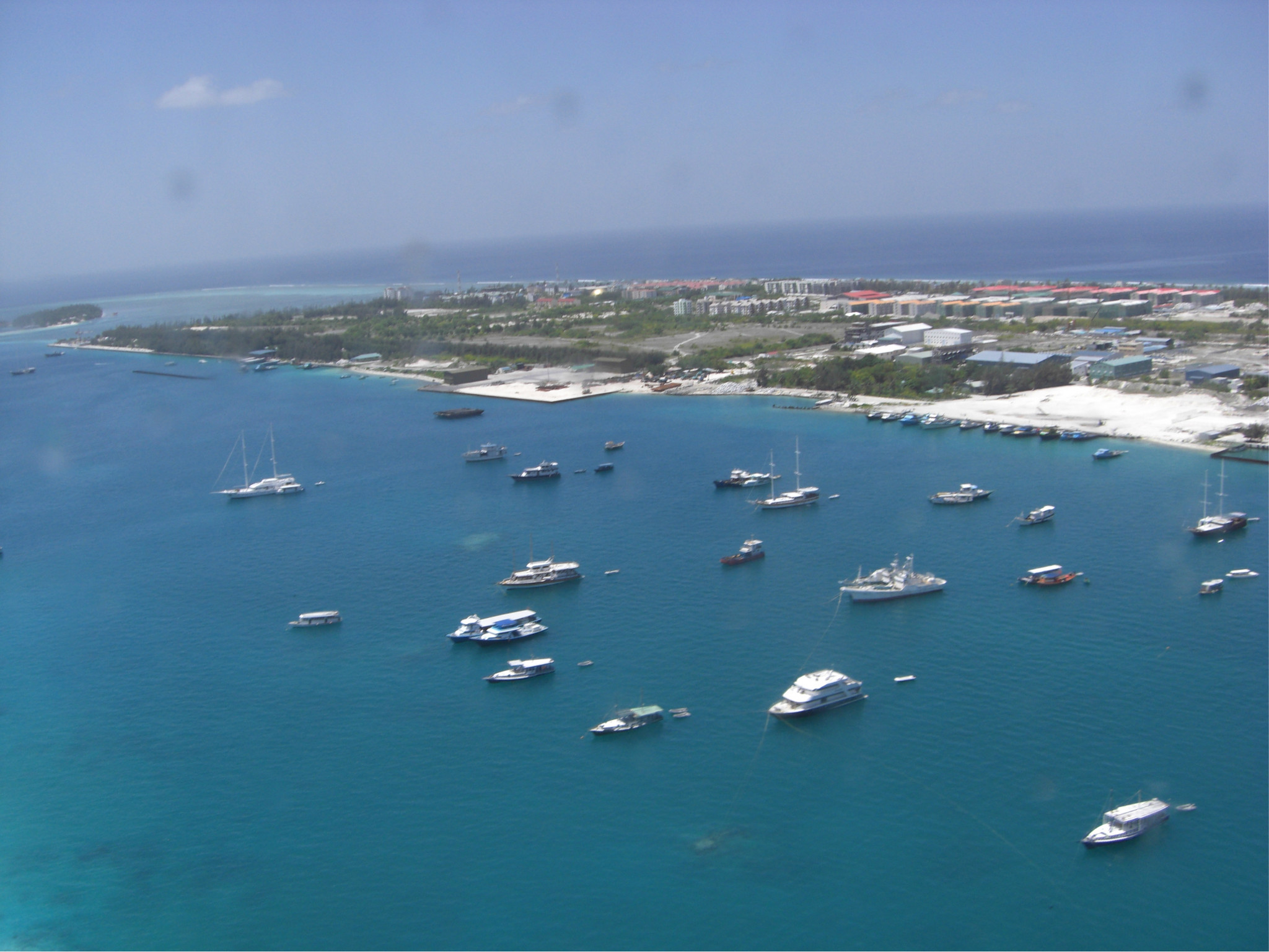 在出机场后,会由小巴车带你去各个岛的休息站,在那等候水飞的飞机上岛。这个机场岛对就是马代的首都马累 啦~如果回来有时间可以坐船过去看看,这个最后会具体讲呢,大家表急哦~