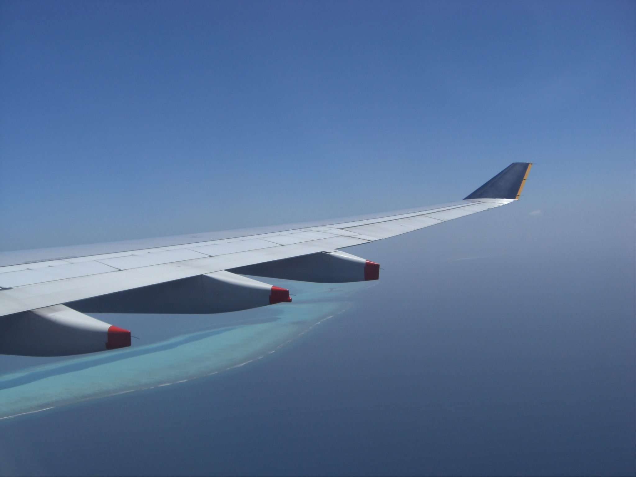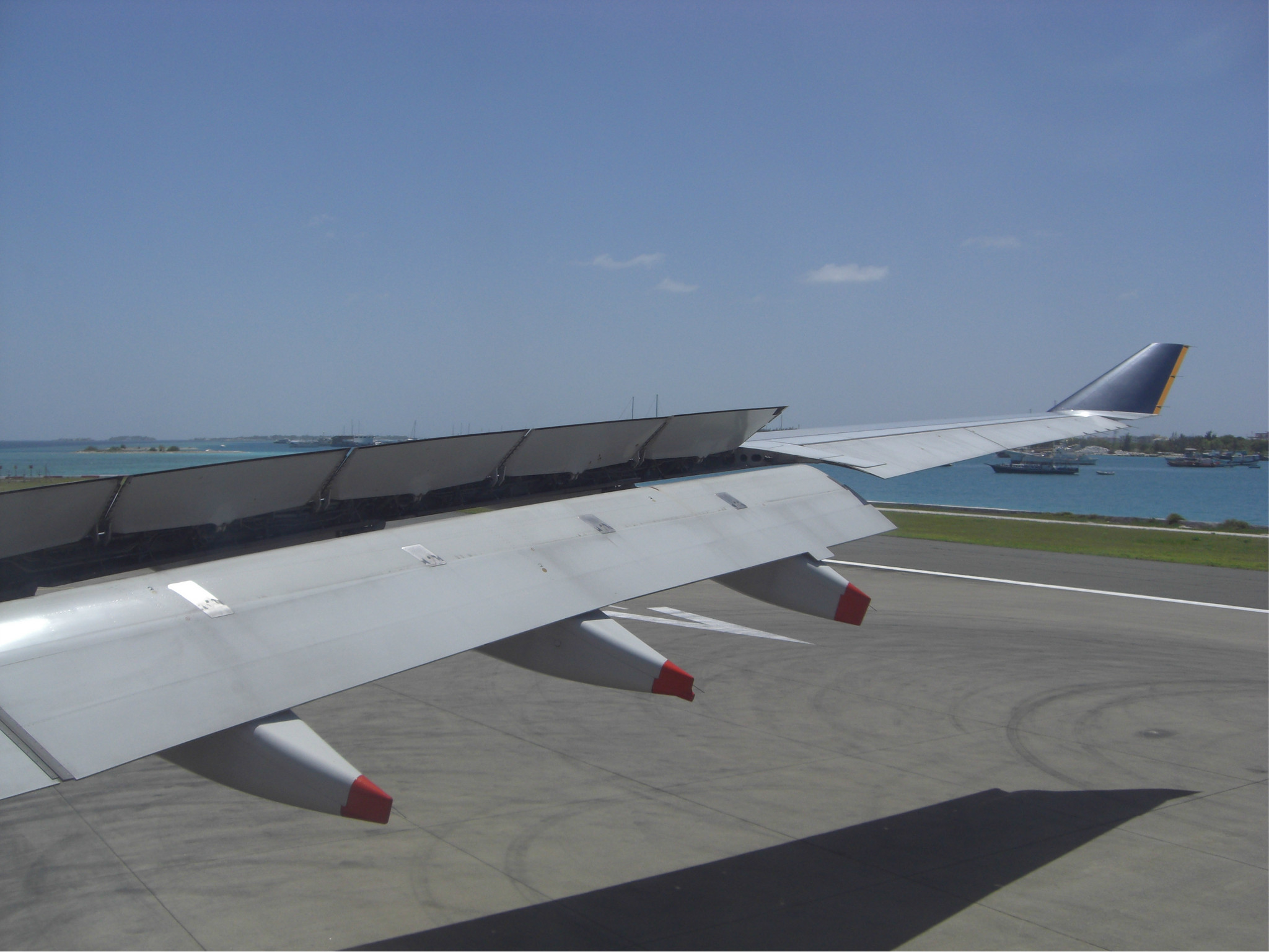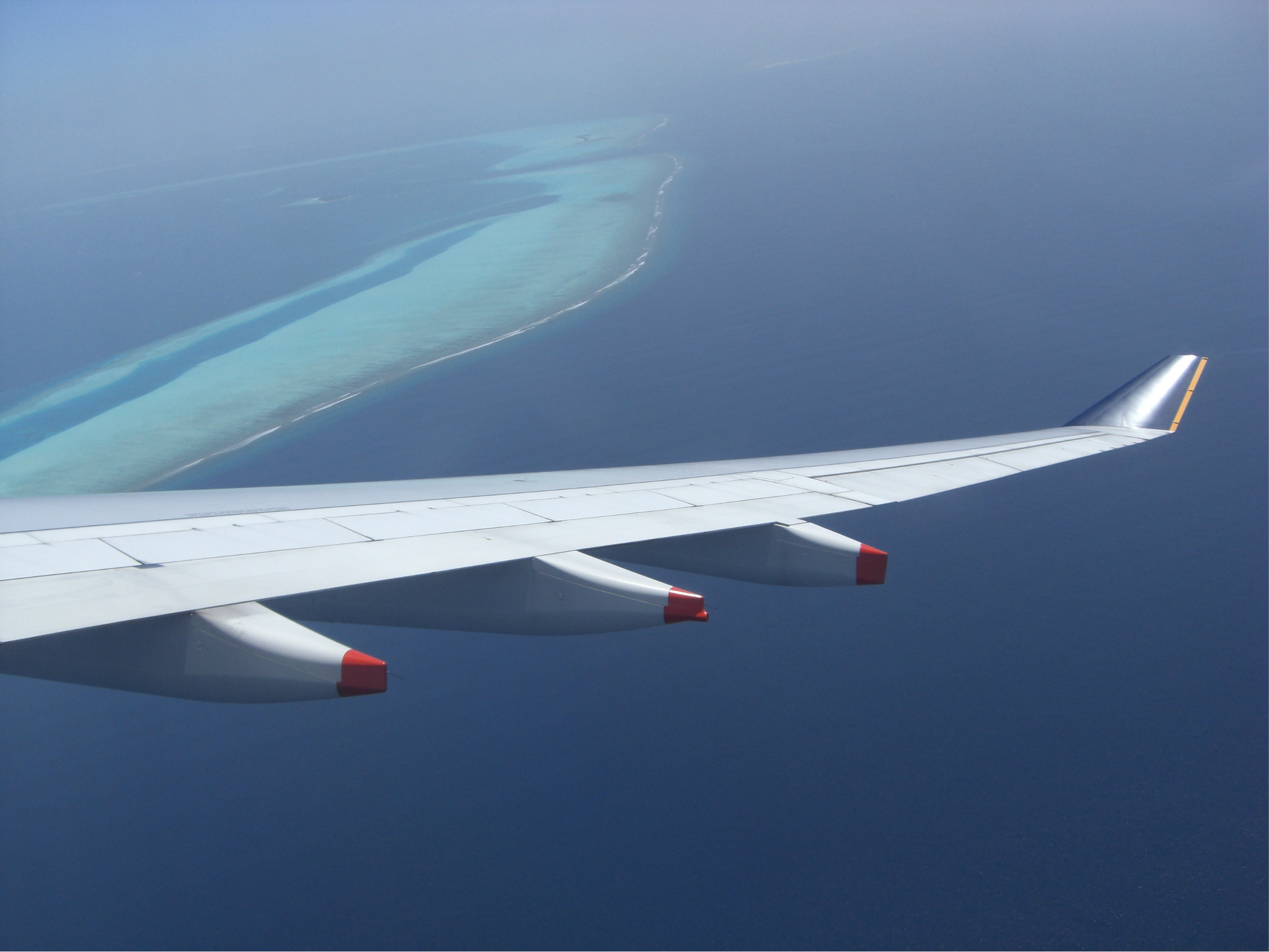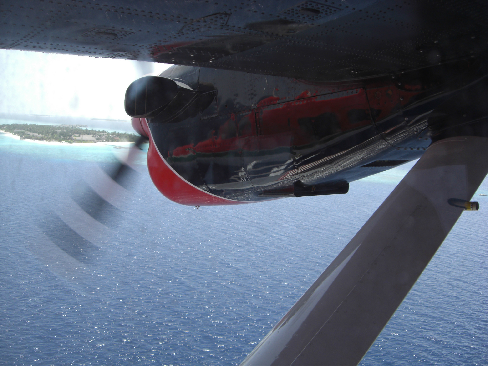 着陆的这一刻,被远处的海景美呆了,深蓝浅蓝很分明的一道界线,真狠不能马上冲出灰机去~