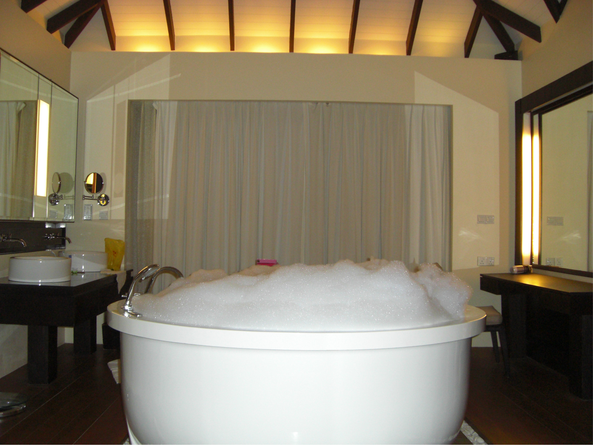 怎么样,泡泡浴泥是千万少不了的,在家可起不了这么多的泡,当然还是冲浪浴缸的效果~哈哈!