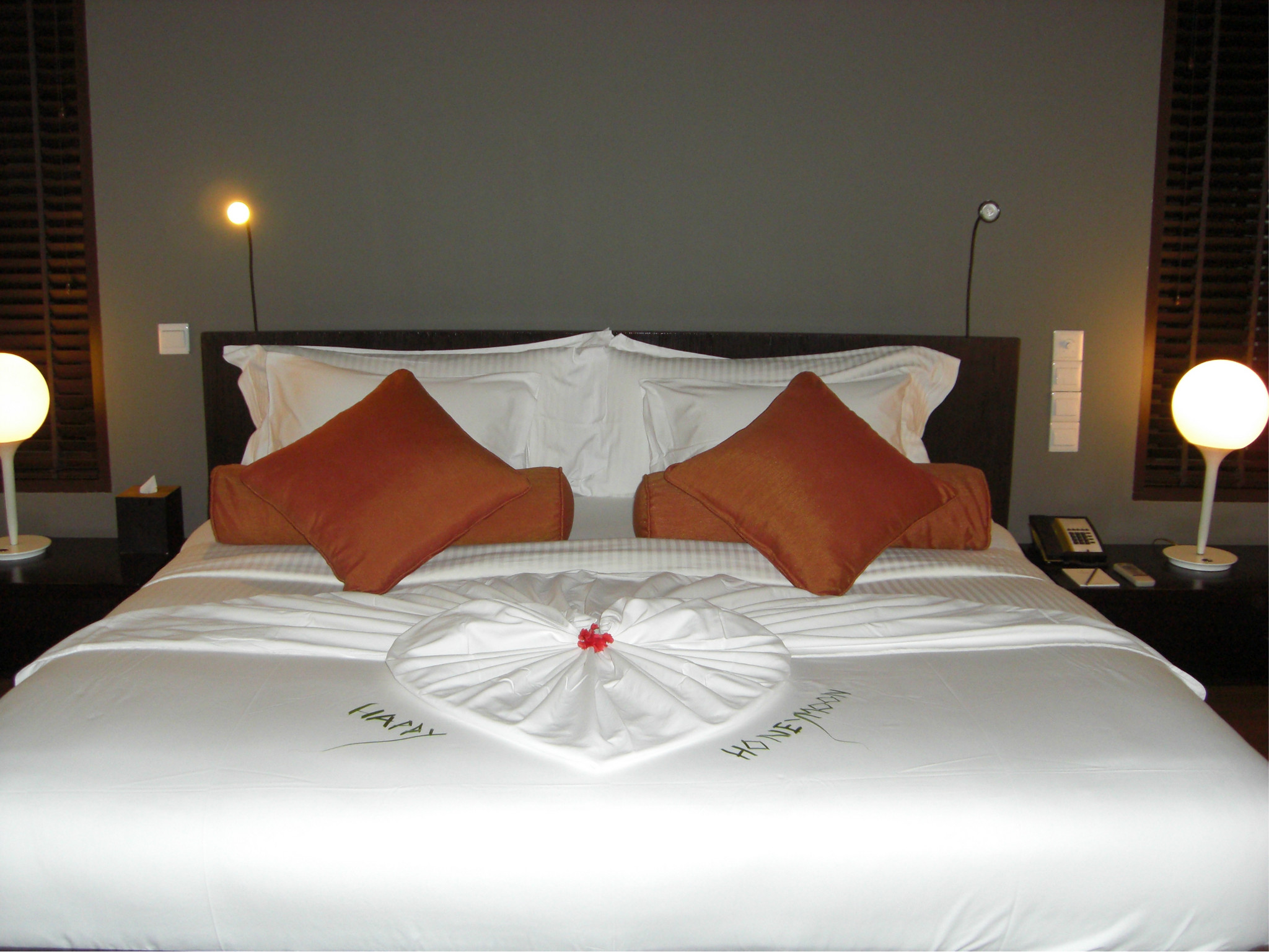 第一天上岛的都有布置蜜月花床,电视机上也会有你们俩的名字哦,很有宾至如归的感觉呢。从来没住过别墅的我们终于体验了下,感觉不是一般的爽。