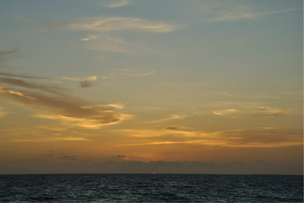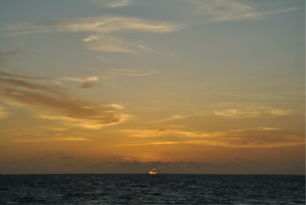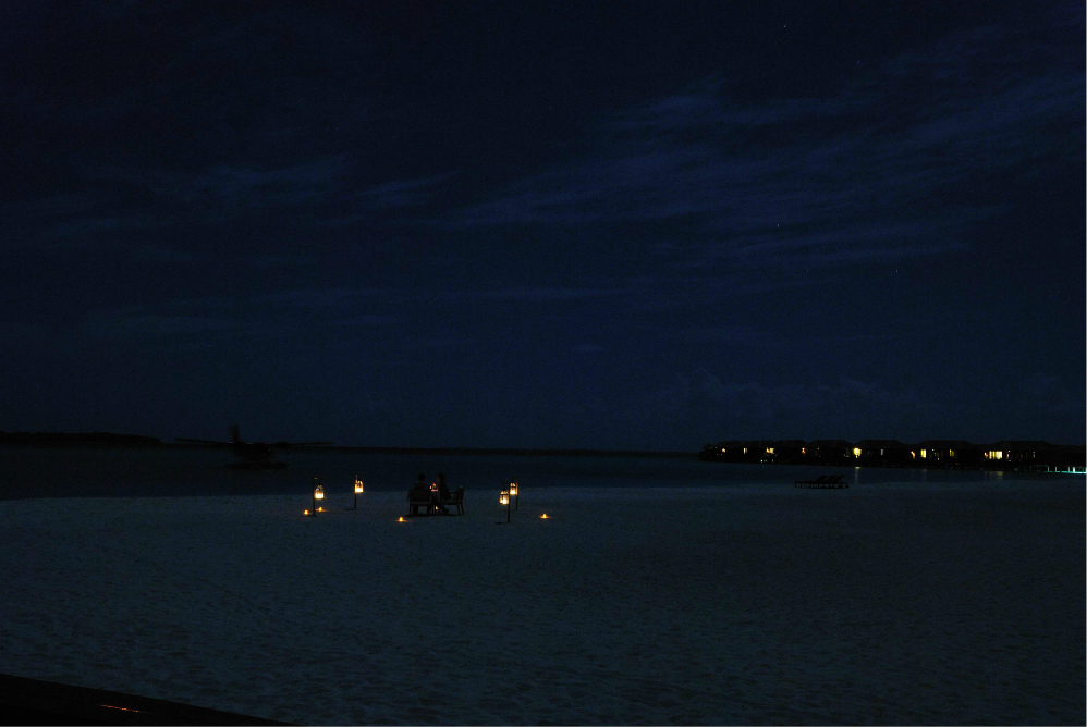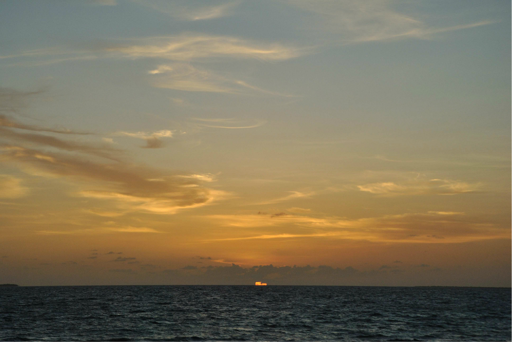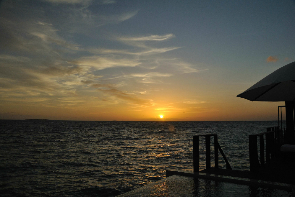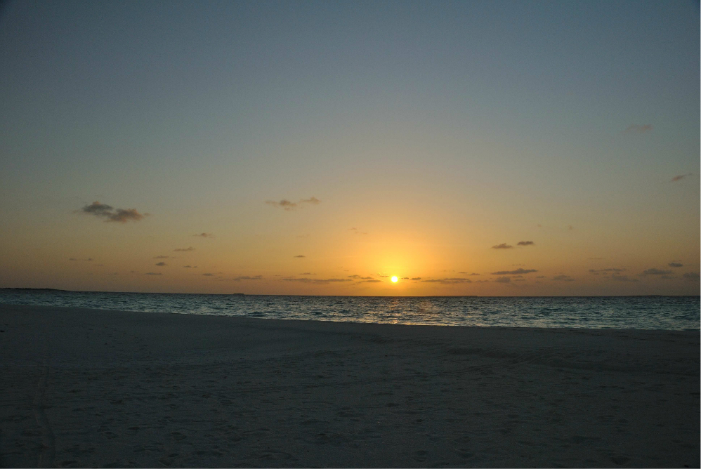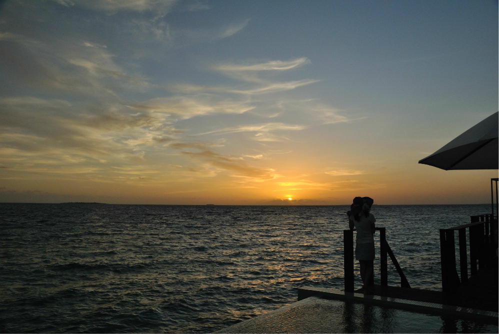 如果你没订到单排水屋的最后一间房的话,那在Z岛 尾部这片拖尾沙滩看日落是最佳的哦~