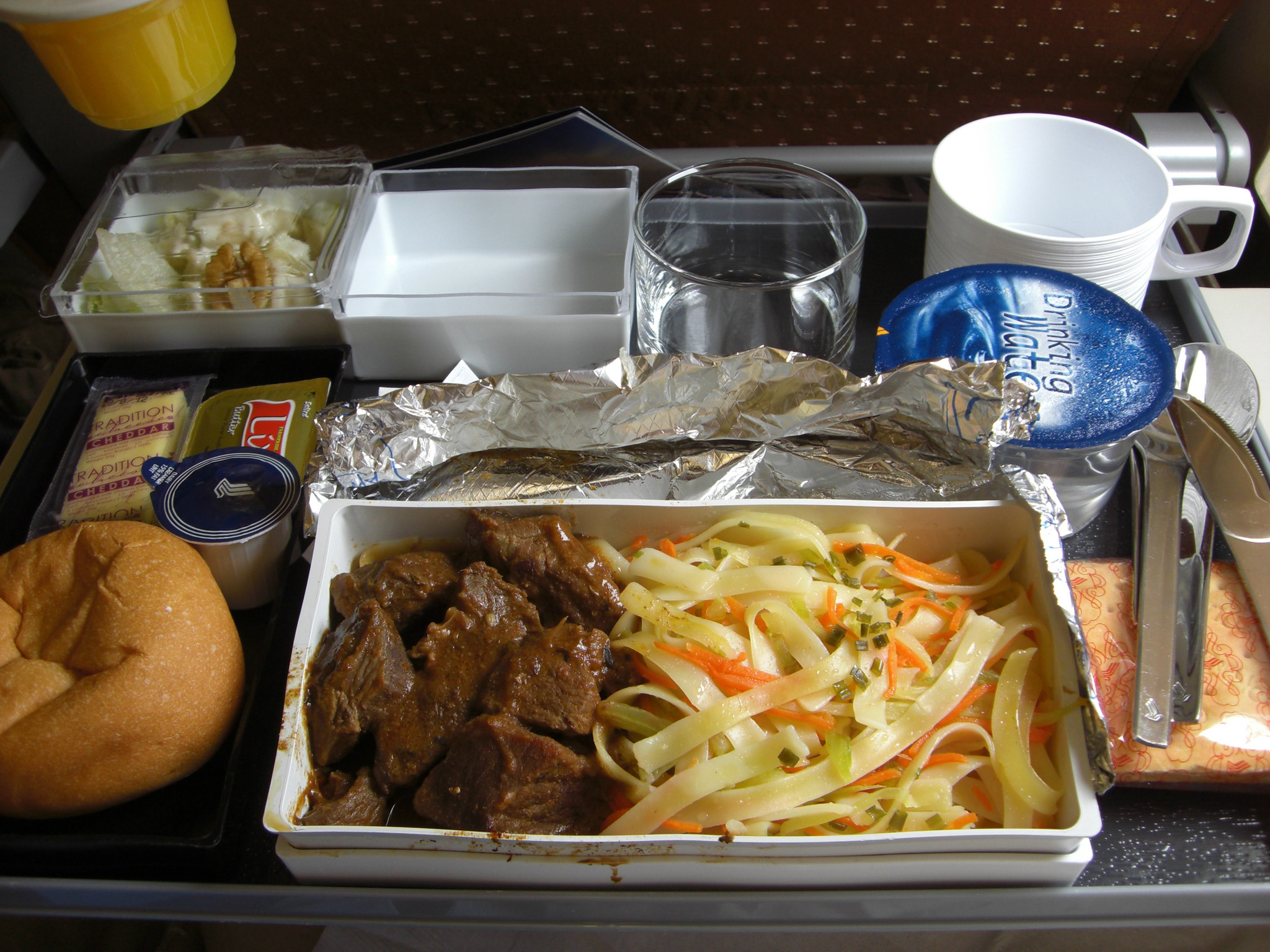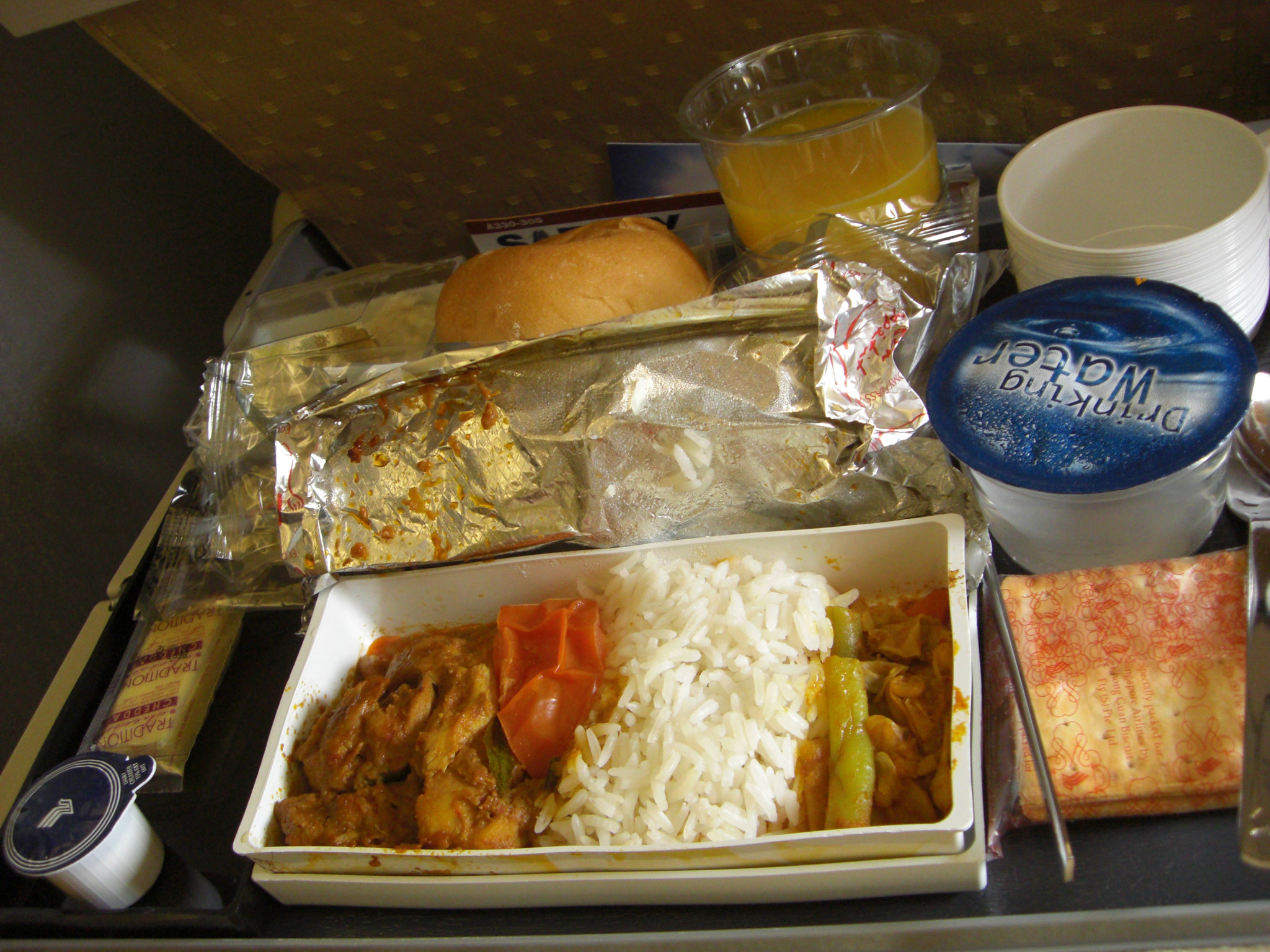 说到吃的顺便上几张新航灰机上的吃的吧~大家如果坐新航的话一定要尝一下鸡尾酒,味道很不错咧~还很值得一提的就是新航午餐中的牛肉饭,里面的牛肉超大块的~和我们国内还真不是一个等级上的。。。