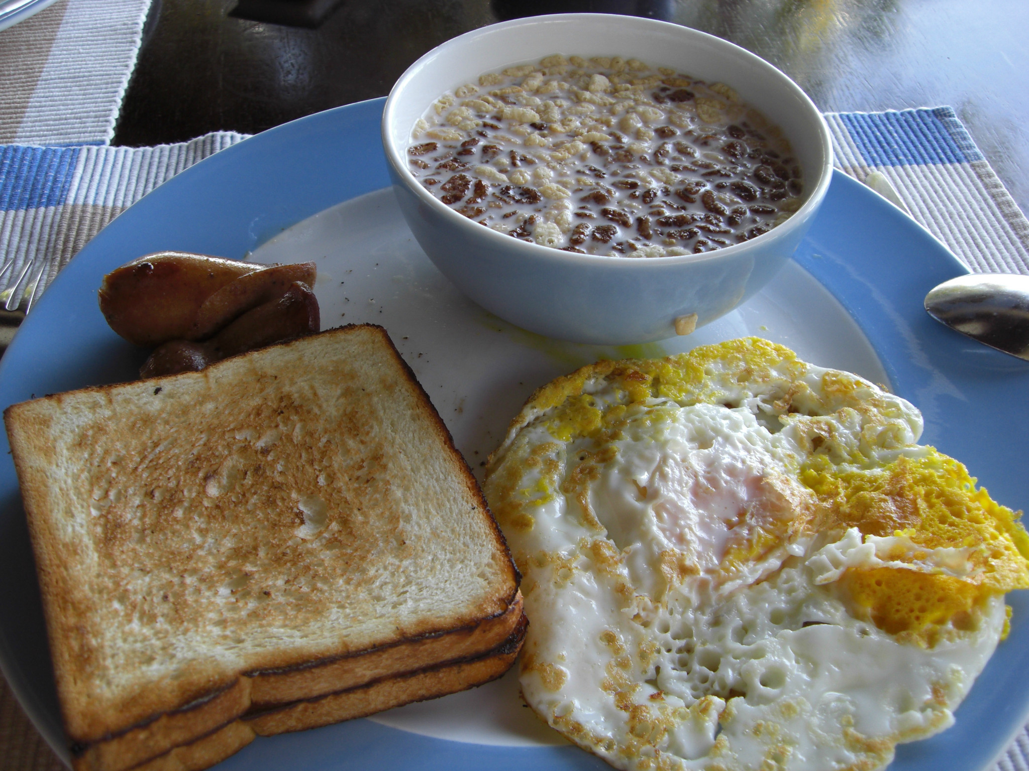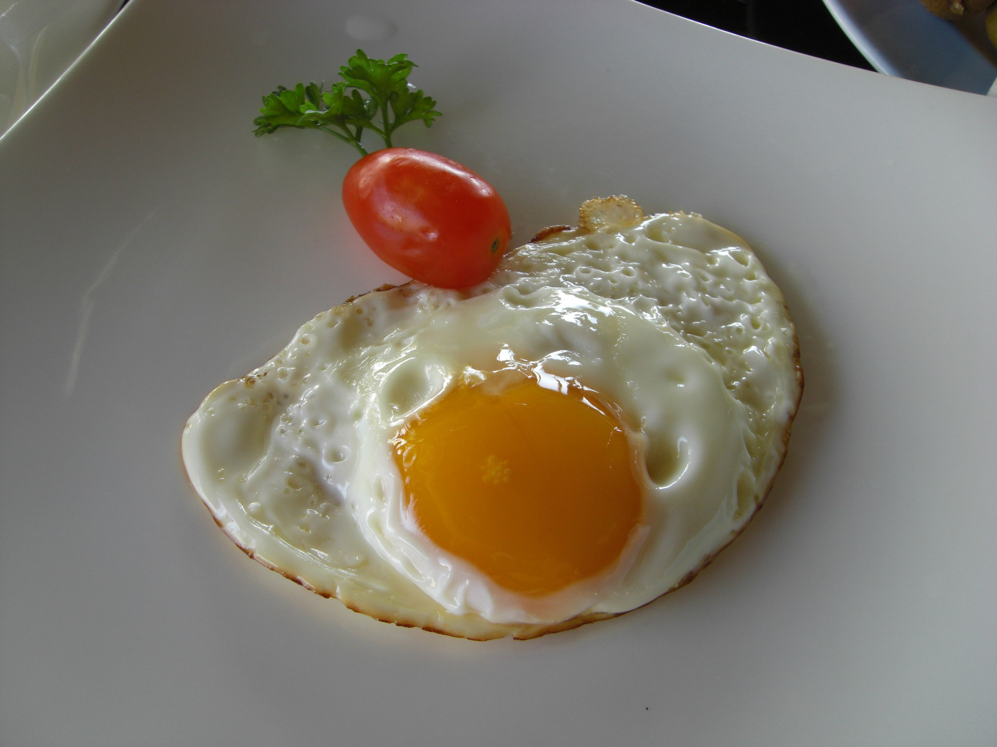 这个虽然好看,不过偶不太喜欢吃这个半生的。。。于是第二天也不顾好看不好看,直接告诉煎蛋的哥哥,我要一个both side fried egg~ 这个双面煎的卖相确实不乍滴。。。
