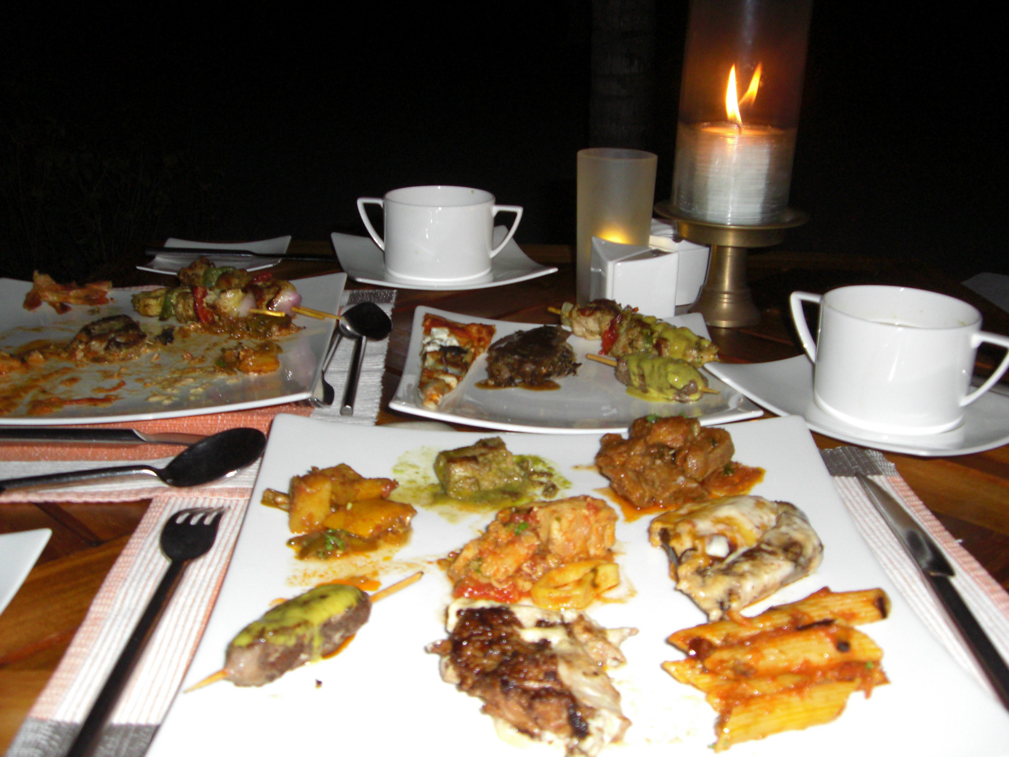 其实光线是真心暗,基本上看不太清盘子里的食物~更让我们惊奇的是,那俩老外从我们吃饭的时候开始用餐,等我们吃完逛完小岛还没吃完,当我们回去洗完澡出来抓寄居蟹玩的时候,他们还在。。。好吧,咱承认咱还真是一点浪漫细胞木有来着~