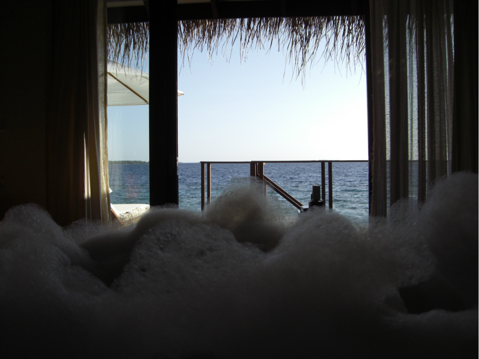 海里上来后,冲个凉,边泡着泡泡边看着风景,在这里时间就是可以这么大把大把的挥霍~