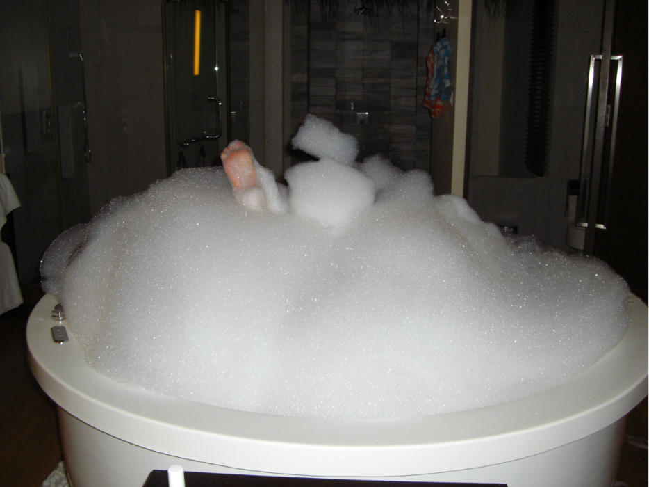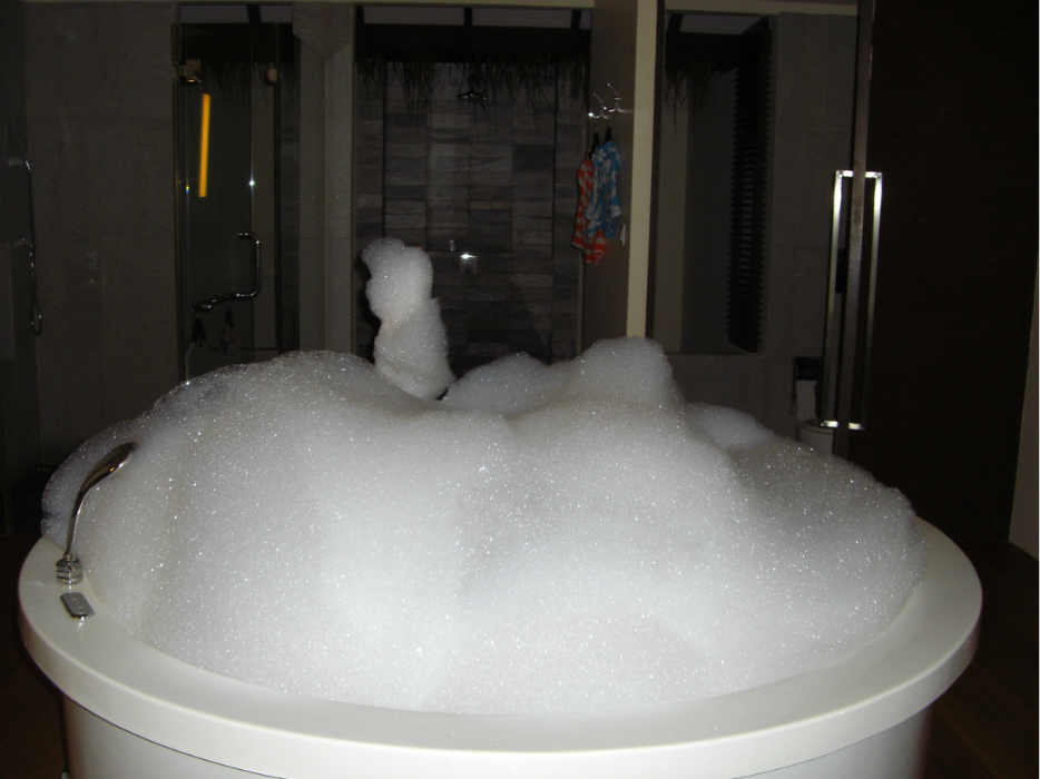说到泡泡,我在淘宝淘了3块~一次用一整块实在是太浪费了。。。这里的浴缸都带按摩的,把泡泡皂放进去后只要把按摩的功能开起来,瞬间泡泡满天飞~