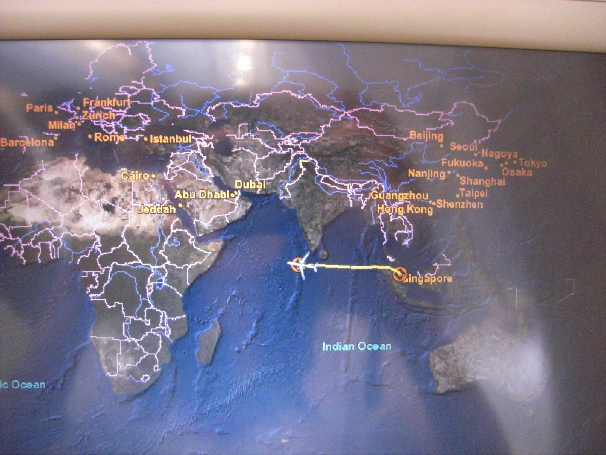 这个已经飞到了印度 洋上空,白云下面便是印度 洋咯~
