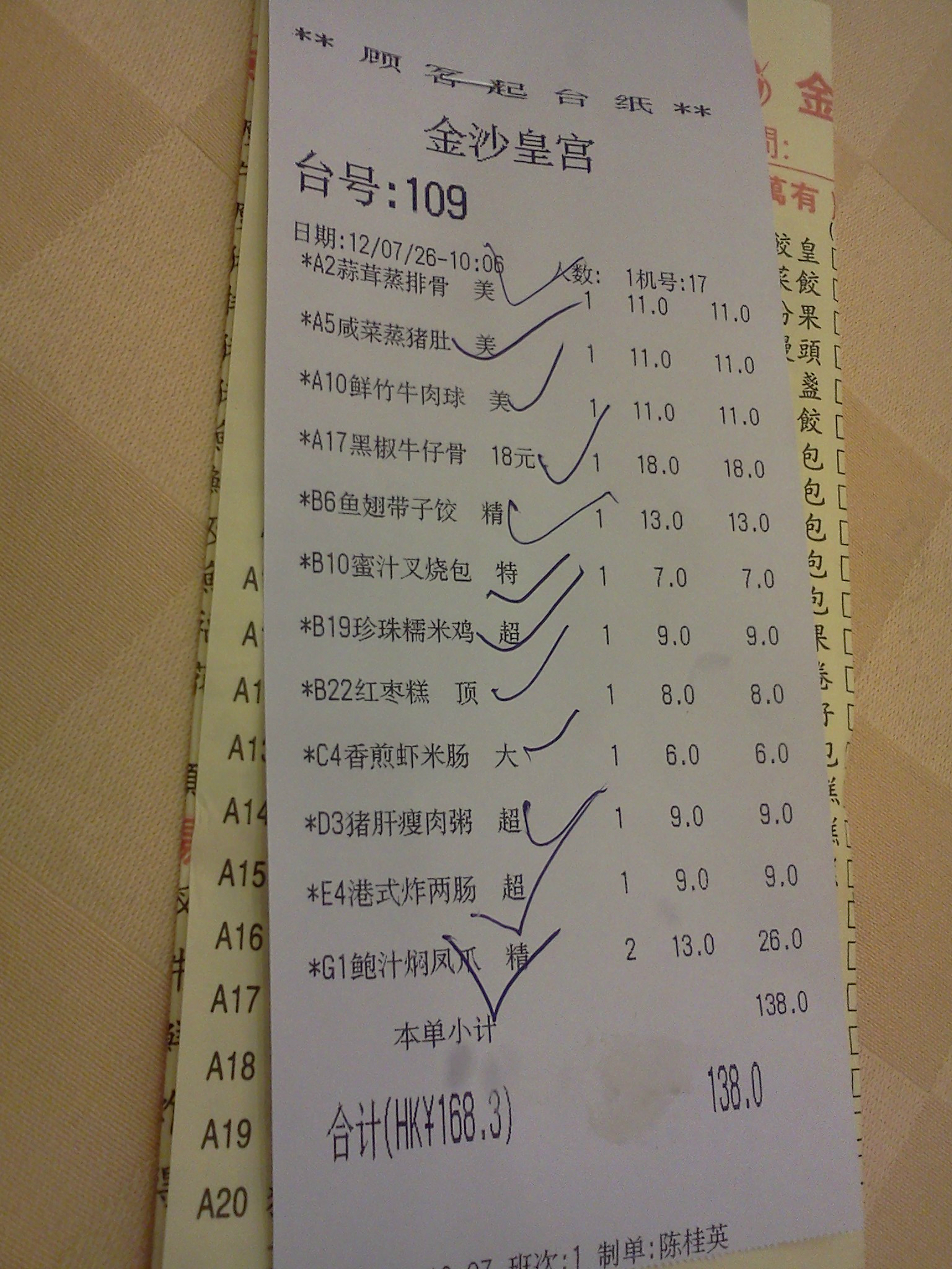 如下是一部份点心的价格:
