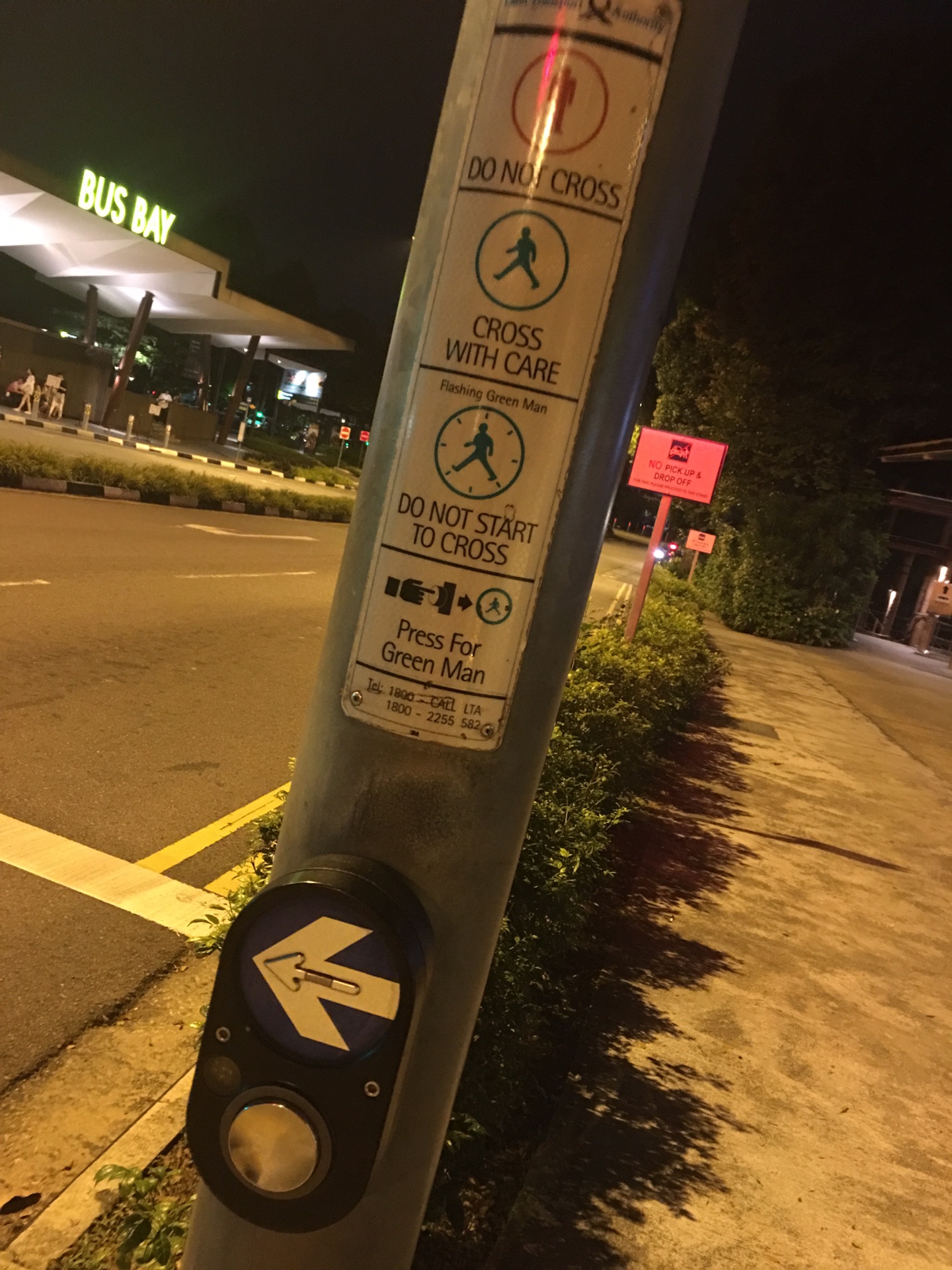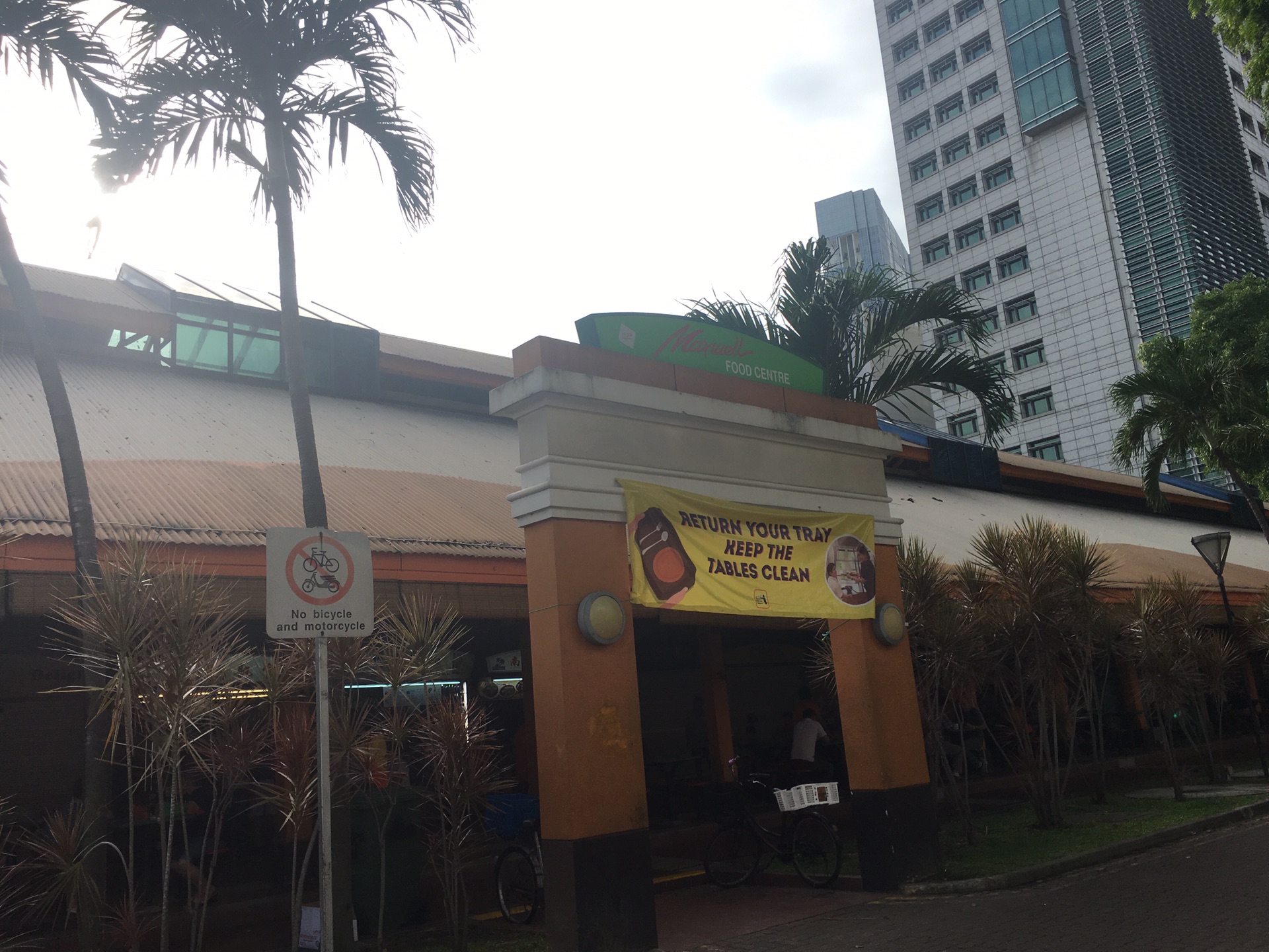接下来为了目标天天海南鸡饭跟着导航一路找到了熟食中心(新加坡过马路要按一下路边的按钮,参照图二那张别处拍的照片,箭头下的圆形按钮)