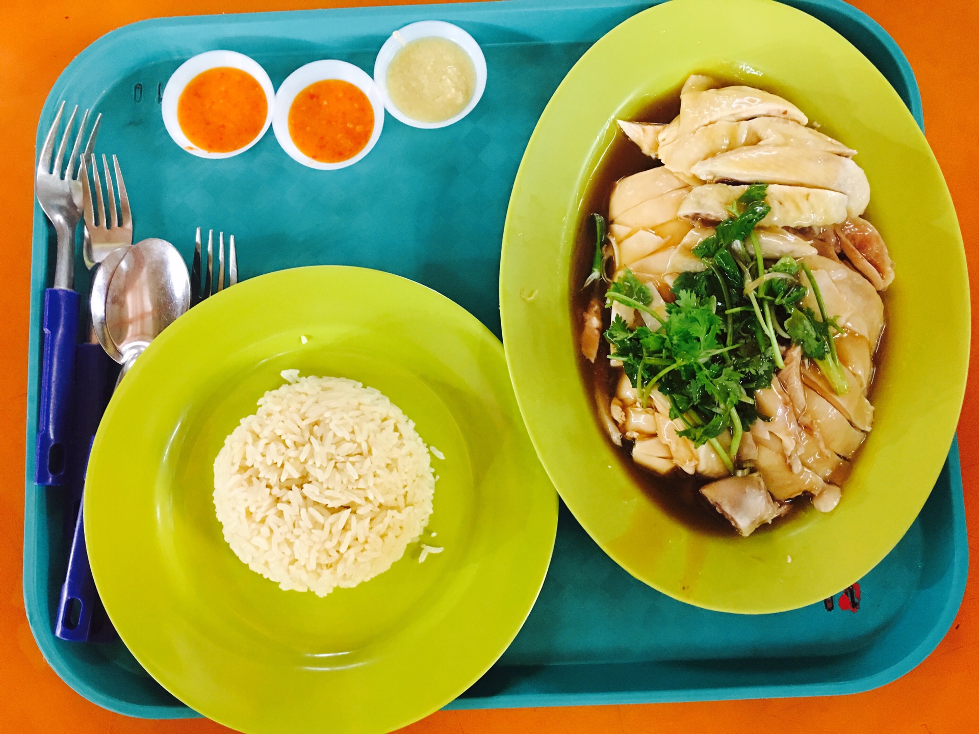 熟食中心就像我们这的大食代,但是里面真的超热,先买了杯薏米水解渴,这家是几天来喝的所有薏米水中最好喝的。边喝边等待天天海南鸡饭十点开门,排队人真的很多都是慕名而来,鸡肉很嫩蘸上他家特制酱料开启了味蕾,黄白色的那个是蒜蓉酱不知为啥店家看到我们拿了它很惊讶,米饭有淡淡的鸡汤味,三个人一共点了半只鸡一碗饭。建议鸡和米饭分开点,因为光点鸡饭鸡肉量有点少。