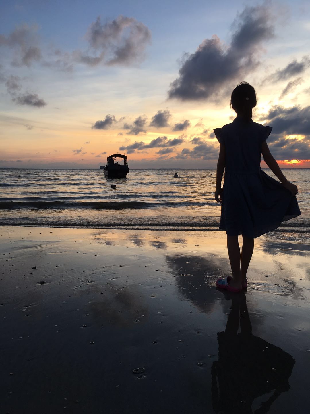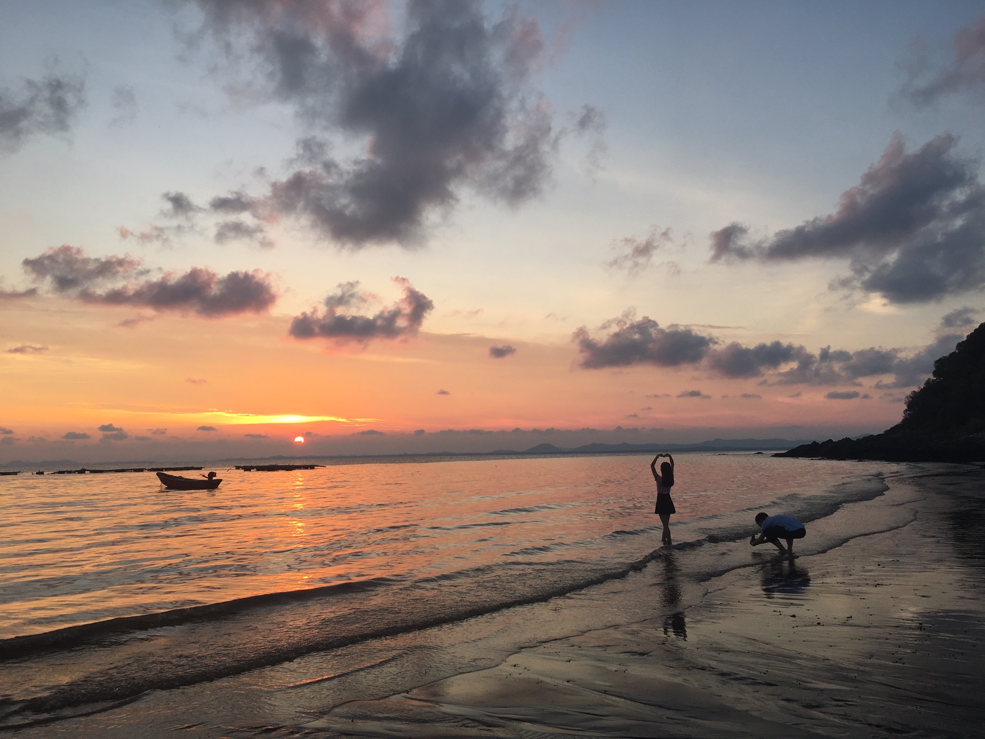 日落真的很美,沙滩上的一对小情侣在拍照,女生摆弄着各种姿势。女生看完男生拍的照片后,直呼“超好看啊!”由于声音太大,被我听见了。可惜我不够漂亮,照片就不发上来毒害你们的眼睛了~