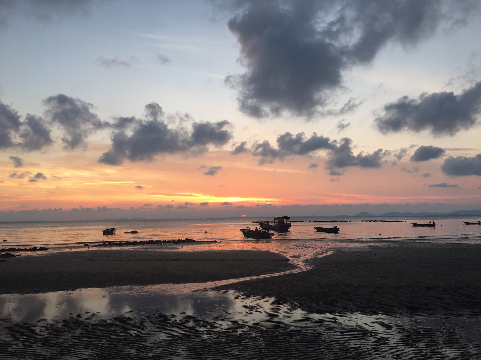 度假村每晚依旧能欣赏到美丽的日落,晚上有人挖贝照蟹。可惜在停车场烧烤喝酒的人太多,嘈得12点过后才睡着。