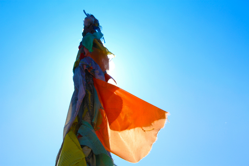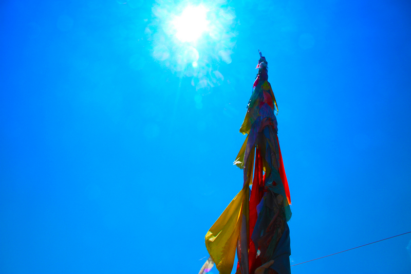 逆光下的经幡随风飘扬,暖暖微凉。沿着泥泞小路,朝旅舍背后的南山走去,因为扎西太太说在山上可以看到青海湖 的全景。南山不是传统的旅游区,除了近处住宿的驴友,它并不吸引匆匆的旅行团。而今天,南山的路上更是只有我和妈妈,这最宁静的游玩。