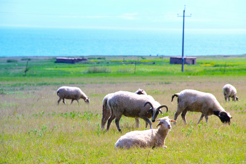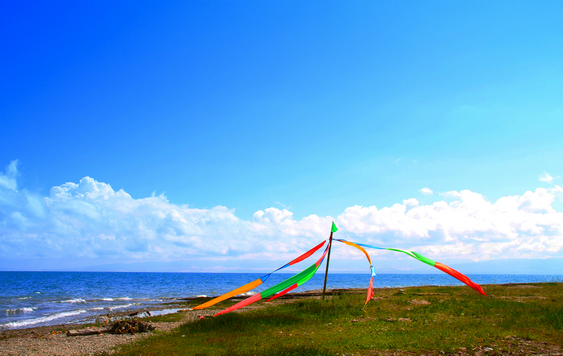 离开南山牧场,我们朝着湖边走去。下湖边的黄泥小路是由藏民修建的,而小路两边的青稞和油菜花,也是藏民种植的,地块和作物都归藏民。临近湖边,搭着一个龙门 ,一名六七岁的藏族小姑娘看到我们,立马从帐篷迎上来。小卓玛的汉语并不好,只会简单的一两句“进去要5元。那边不能去。”哈哈。我们走到了真正意义上的湖边。撩拨凉凉的湖水,波光涌动,连空气也是腥腥的蓝色。脚下,垒起了一堆玛尼石。这是藏族人祈求安康 的方式,多出现在路边山垭湖边。我不贪心,放上一块小幸福足以。在青海湖 边晒太阳,也是一种奢侈。