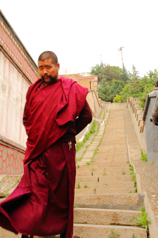石梯的尽头就是游客止步的行宫,这位喇嘛从班禅行宫走出下来。