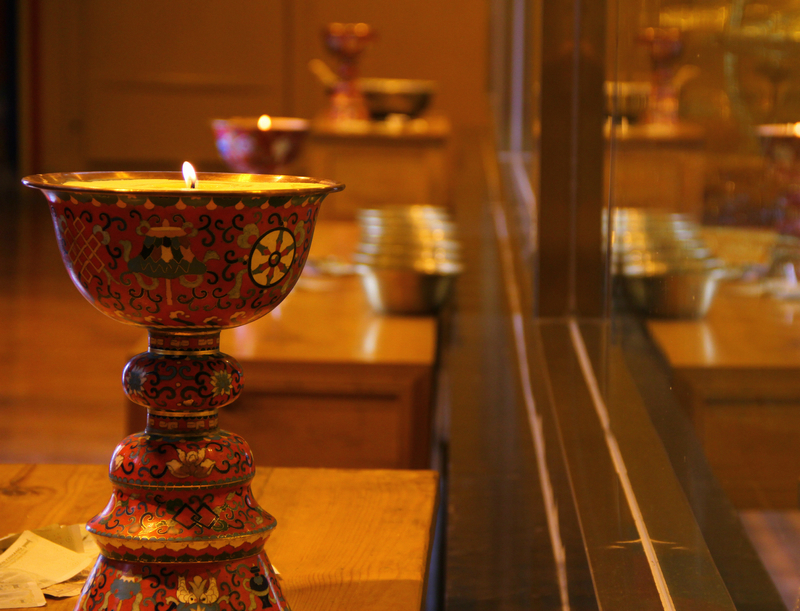 在塔尔寺的门票80元并不便宜。我们**了。我偷拍蹭导游,转经点酥油,它们并无冲突。塔尔寺有大大少少的殿堂经院,也有班禅喇嘛的行宫。进入殿堂里,阵阵奶香扑鼻而来。(我妈坚持这是一股“酸馊”味,扫兴。)那是酥油的气味。没有蜡烛,只有酥油灯;没有冥币,只有经幡。在藏区,酥油是他们的生活的必需品。在藏传佛教,酥油灯既是信徒与神灵的对话载体,也是生者对逝者的最后告慰。