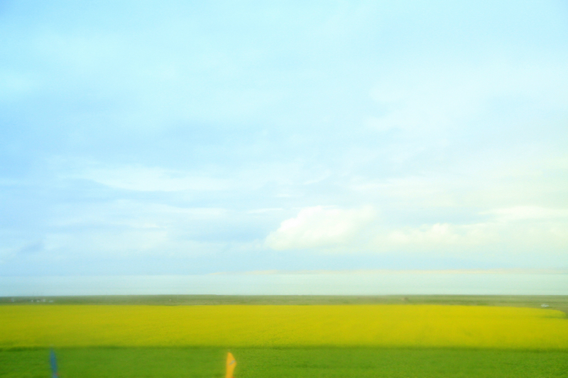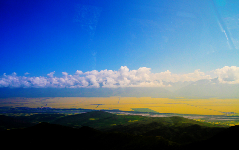 前往青海湖 的路上,天边乌云密布,大雨倾盆。车窗起雾了,窗外的梯田油菜花变得模糊。铺天盖地的油菜花田,满眼的金黄翠绿令我惊叹。即使是隔窗观花,我也为这些青山黄花按下了快门,而那起雾的车窗像天然的柔光镜。