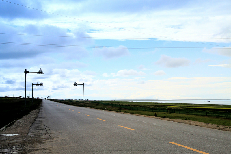 午饭过后,从扎西家坐车回西宁 。这里是青海湖 边的一个小村落,没有汽车站,于是我们只能在路边拦截过路车。这条笔直环湖南 路,G109,是进藏的公路。一路向西,直达西藏 。我坐在马路边,有种搭车到西藏 的感觉。哈哈,屌丝女发白日梦。梦只发了15分钟,就坐上了回西宁 的班车。再见,青海湖 。